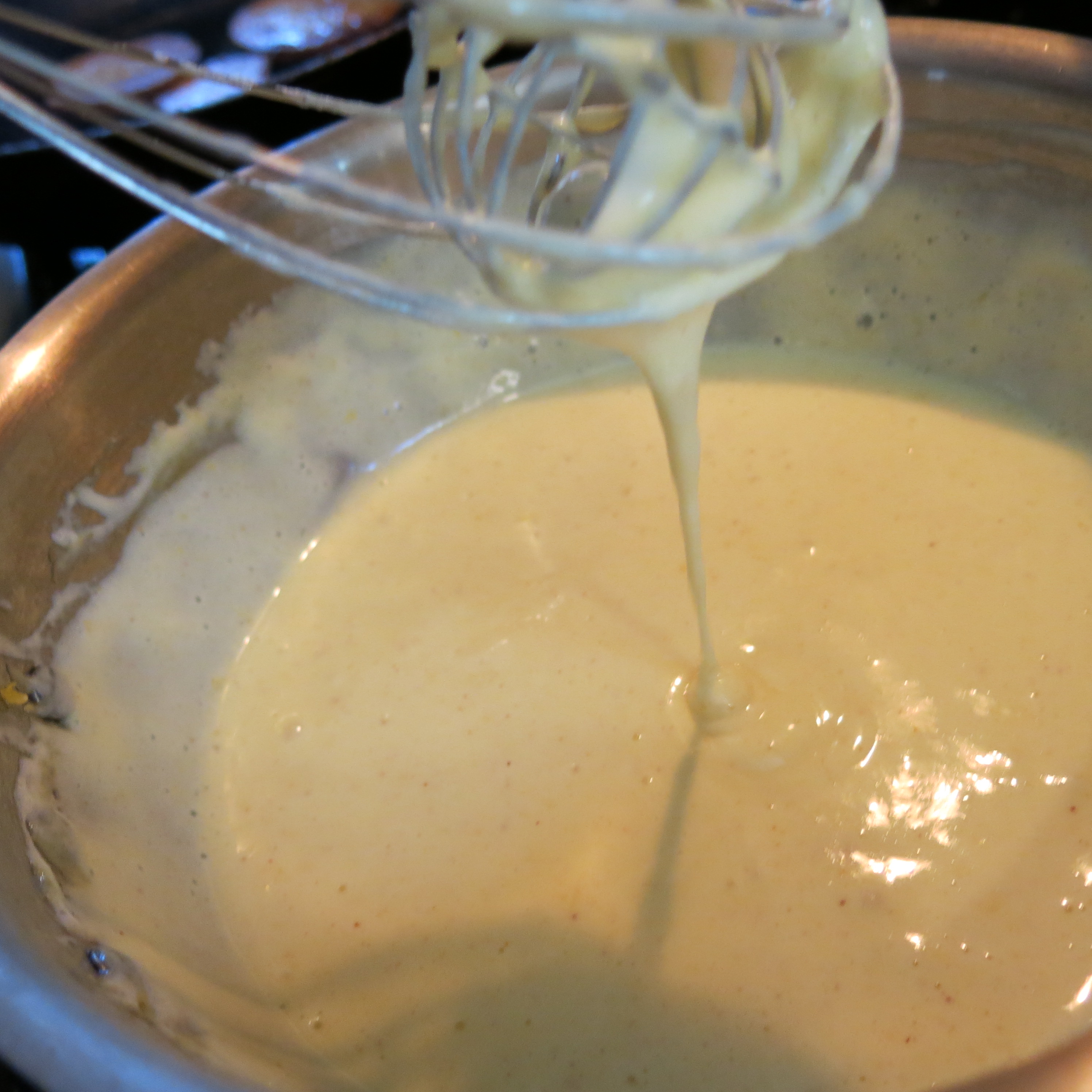 easier to control the heat immediately. If you are using an electric range, keep a holder next to the stove (you can see I have one right there; I used to have an electric stove…old habits die hard). Remove the pan, whisking continuously, if you feel the sauce is getting too hot…remember too much heat is our nemesis.