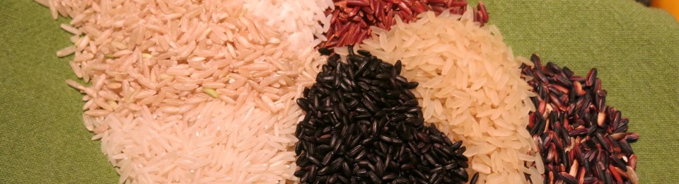 Rice is a cereal grain; there are white, brown, black, red and purple varieties of rice. Rice offers a wonderful backdrop for other flavors, because it is has such a neutral flavor. Combined with legumes, it becomes a vegetarian protein. It is low in fat and offers a good deal of Vitamin B, potassium, and phosphorus, as well as some fiber, which is all great…but how do I cook perfect rice? UPDATE: I have discovered the best way to cook rice is the Absorption Method, which I touch on in the article. I have revised the recipe to reflect the way I now cook rice. I’ve found this works with converted, Jasmine, Basmati, and Chinese Black Rice. I have not used this with the short-grained rices, but usually one make risotto or paella with those and the method is similiar, but different enough so as to fall under its own category. Please check the changes and you’ll have better rice. I promise!