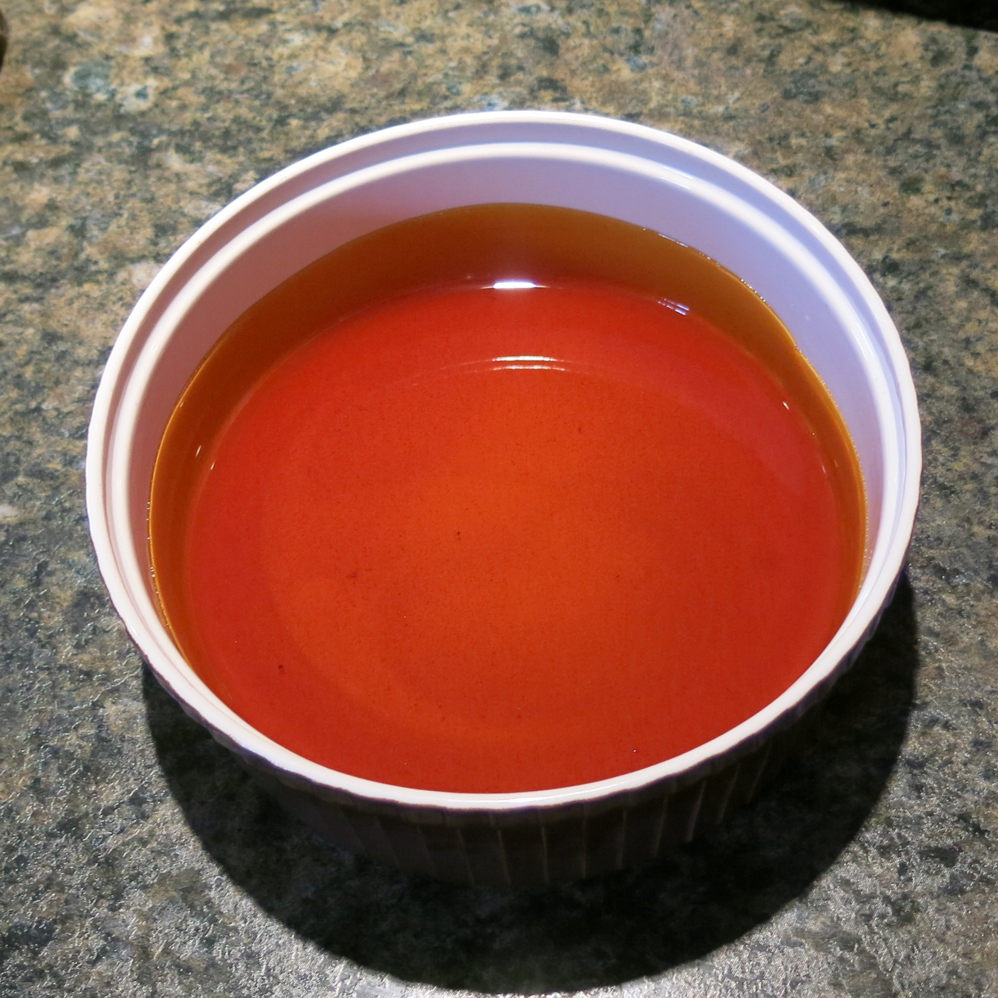 The most difficult part is the caramel. This will become the “flan juice” as we affectionately refer to the caramelized sugar that you line a flan dish with. Making the caramel isn’t difficult, but it seems to intimidate people unbelievably. The main thing to remember this stuff is scorching hot, so it’s best if children aren’t around and once you start, you can’t walk away from the stove or you could scorch it. If that happens, get another pan, let this one cool and start over, because scorched caramel is bitter and extremely unpleasant. It’s easier to tell when the color changes and is just right, if you use a shiny pan, as opposed to say, a cast iron skillet.