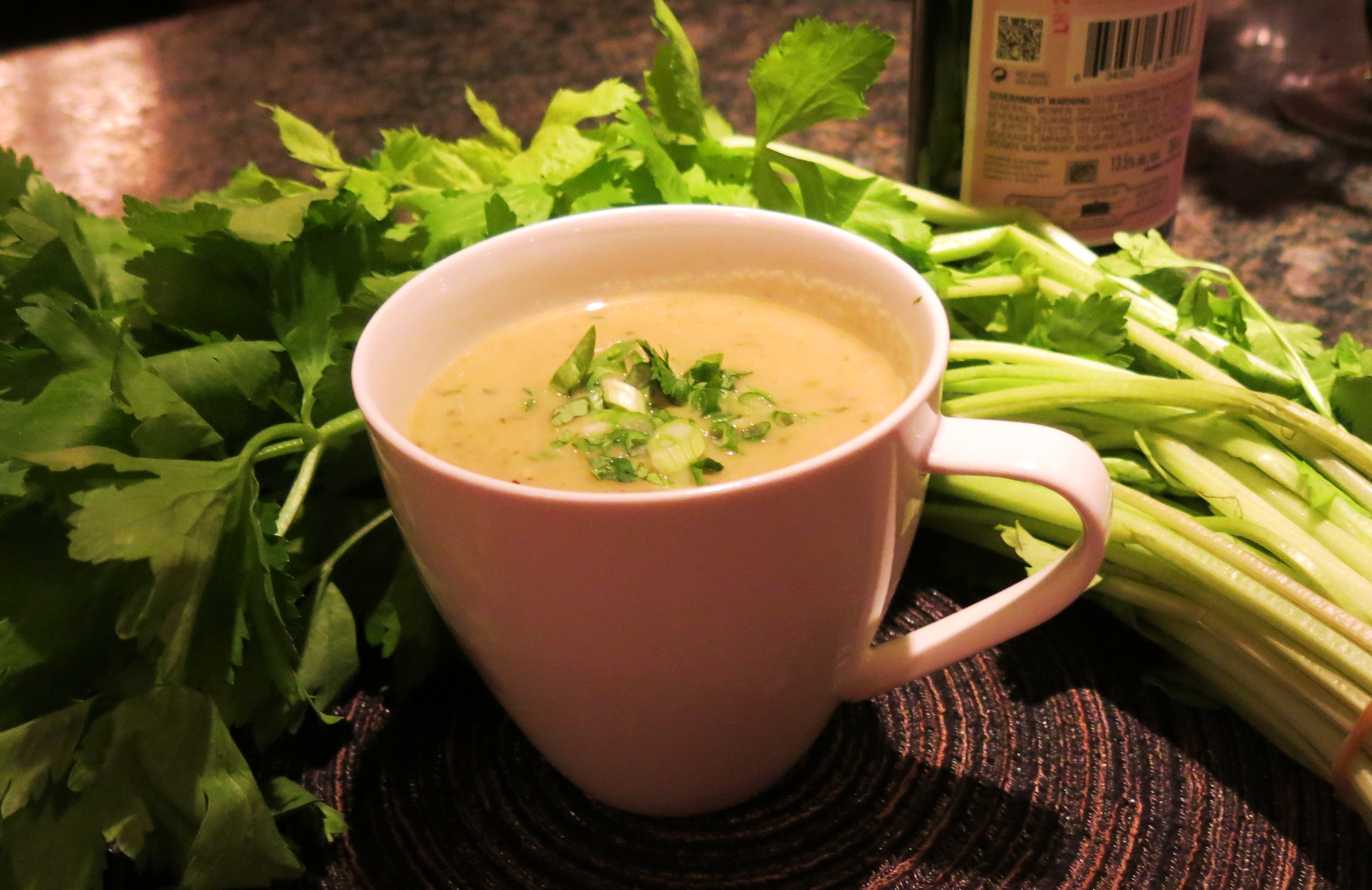 apple, Celery, chicken stock, cream, curry powder, gluten free, potato, Scallions