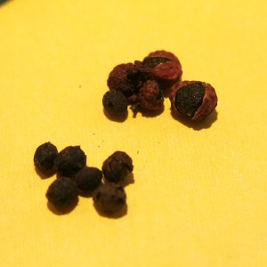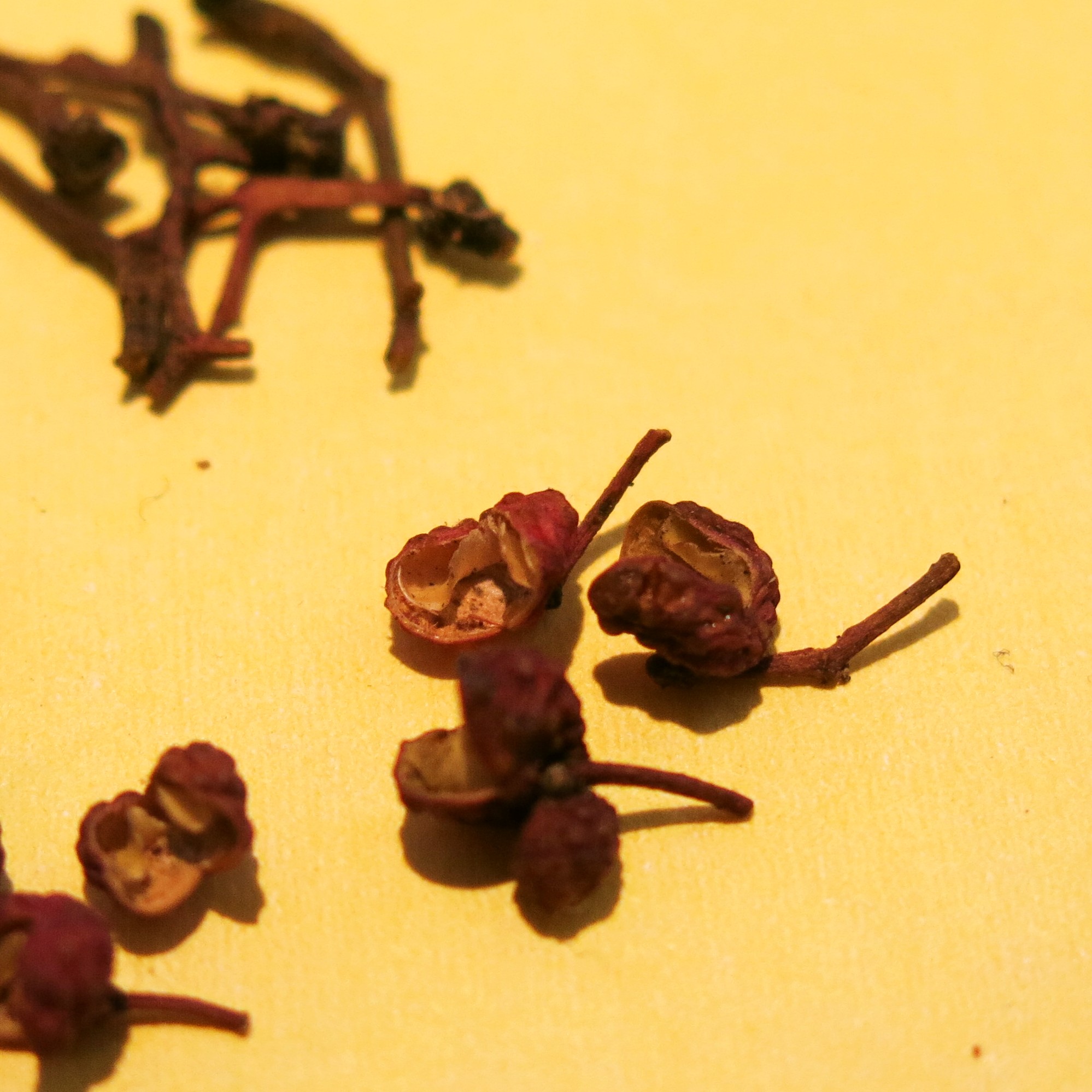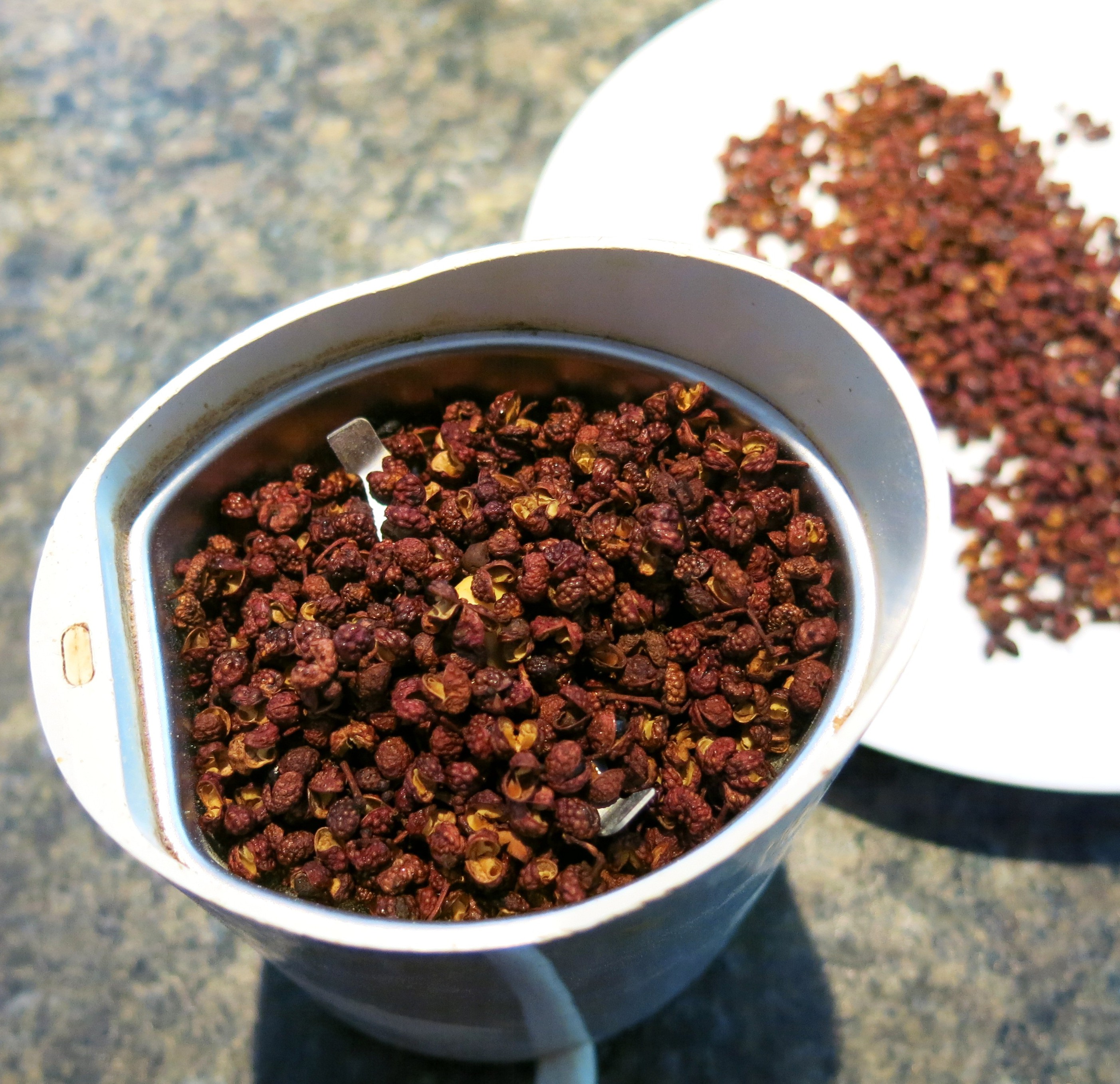 First of all, let’s discern what we’re talking about when we refer to Szechuan pepper as a spice. What we are really talking about using, is the reddish-brown fruit wall or pericarp (the flower “shell”). This is the “shell” that appears burst open leaving a deep black seed inside. The seed is usually discarded, as it is considered to have a bitter taste. Personally, The Goddess’s taste buds are apparently not that discerning or she’s simply too lazy to remove it. I leave it in, but unless you can grind it very, very finely, it can impart a bit of sandy, grittiness when consumed. There are a significant number of species that fall under the Zanthoxylum umbrella. We’re going to focus on Zanthoxylum piperitum/simulans, which are very similar and most readily available in the US.