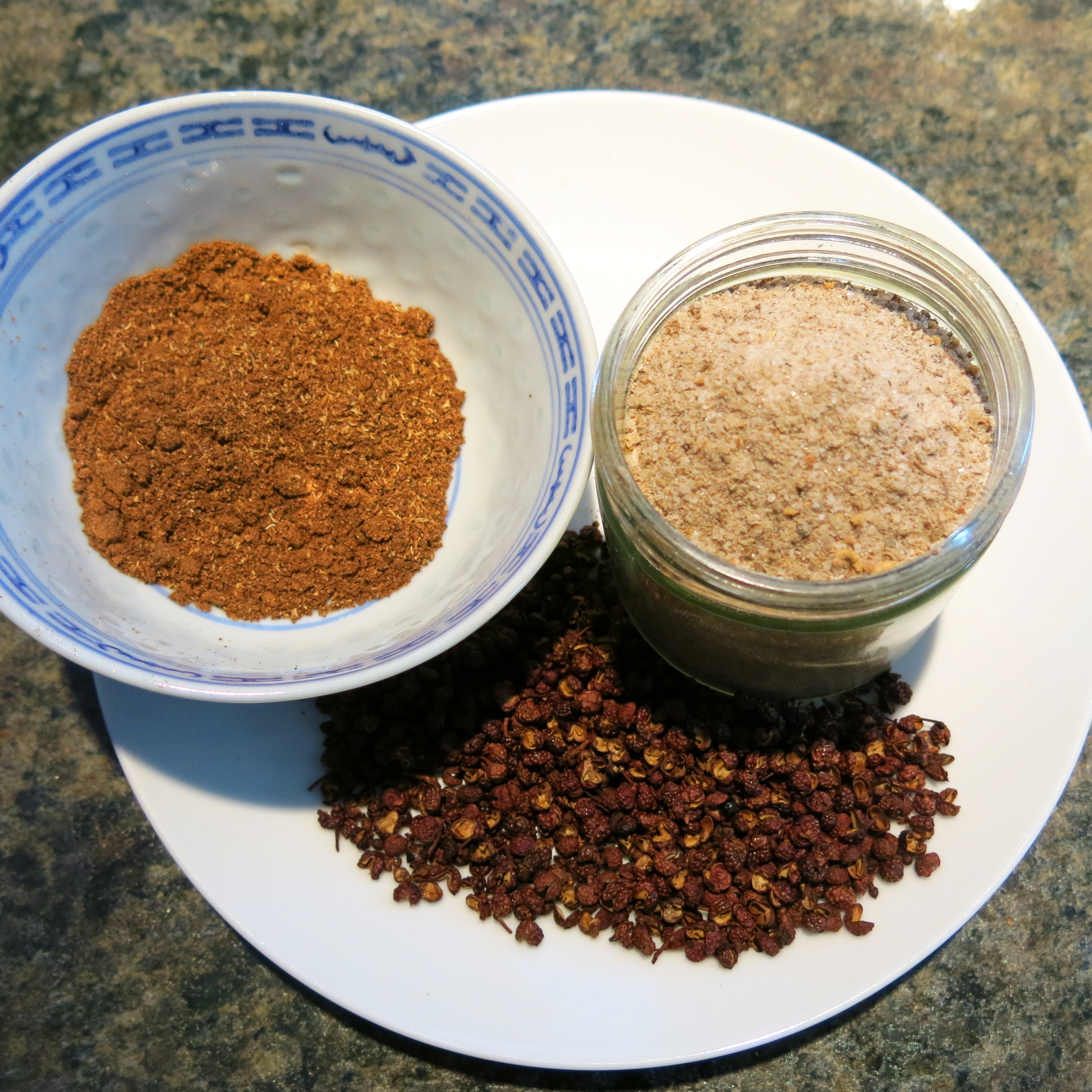 Szechuan Pepper-Salt or Hua jiao yen, is simple to make and it is excellent with chicken, duck or pork. I’m not going to give you an actual recipe, but just proportions. I use:
