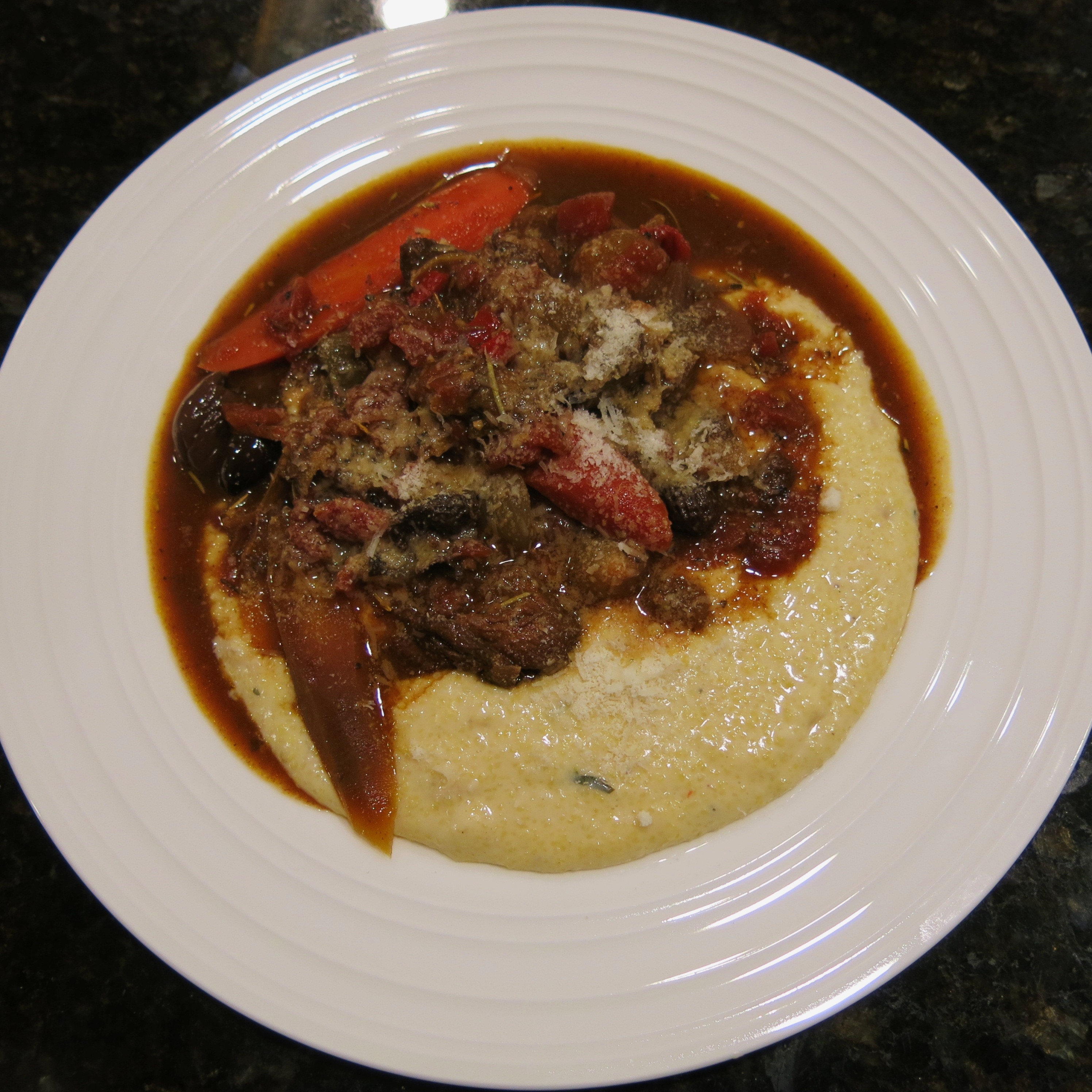 I haven’t made the creamy-type of polenta in years…and I do mean years. I had forgotten just how good it is and that it’s a nice alternative to mashed potatoes. It also behaves as a backdrop for other flavors; herbs, spices, garlic, scapes or ramps, and in this case, cheese! Beautiful, creamy cheese!! I wasn’t planning on going the cheese route, but I had a few bits of assorted cheese and thought this might be a good way to use them up. It was one of those great, happy accidents that sometimes happen when The Goddess cooks. This blend of cheese was perfect for this stew, but I could have eaten it right out of the pot with a great big spoon…I didn’t. Goddess’s don’t do that sort of thing. We use small, dainty spoons, instead.
