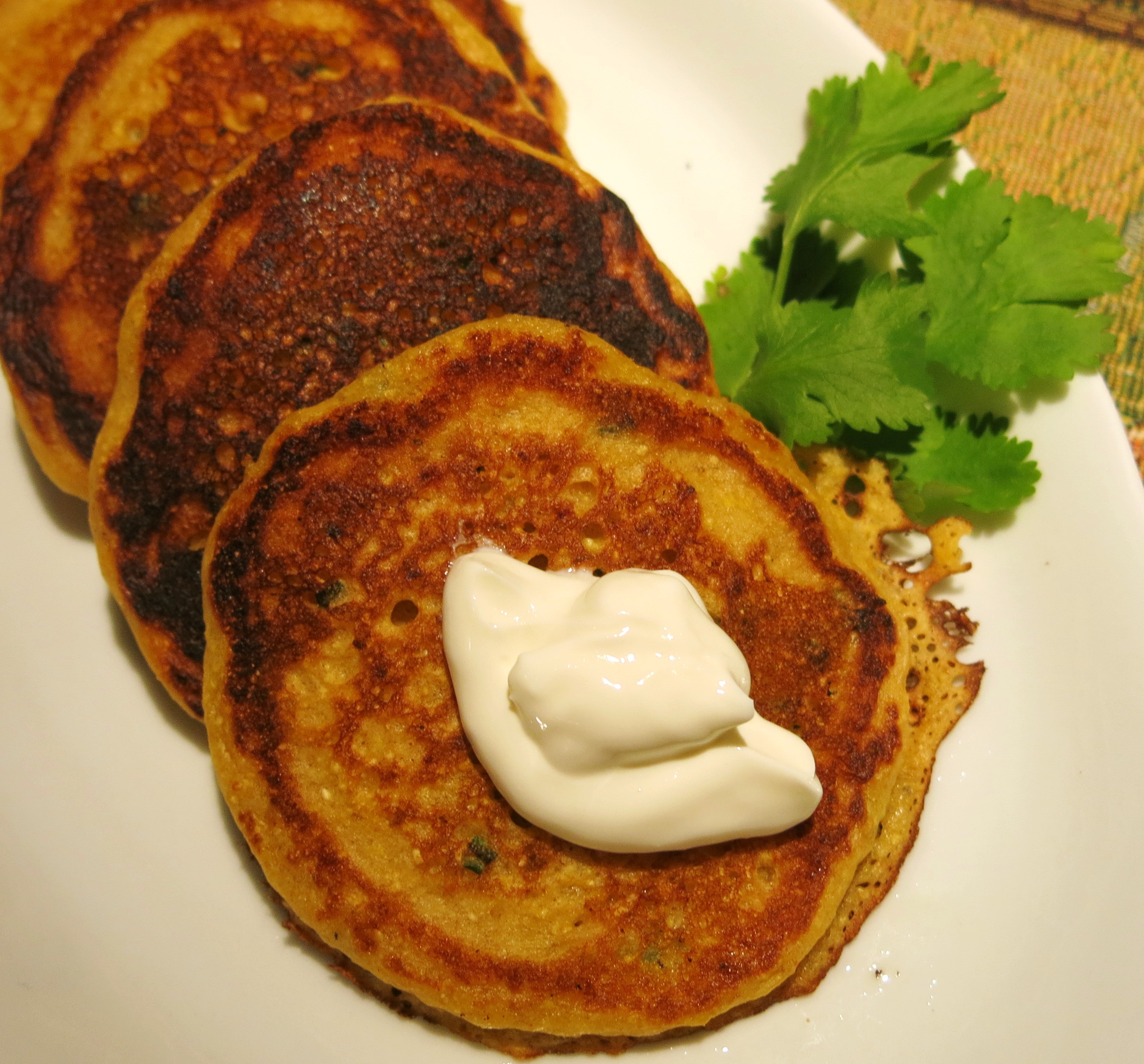 Corncakes are a thing of beauty and surpisingly complex. You get the fluffiness of the cake part, juxtaposed with the crunchiness of the corn and cornmeal; texture is king in these. You can add chopped clams, among other savory things, or simply add sautéed apples or applesauce and maple syrup for breakfast. I love flexible dishes and this is a great one. I made these for breakfast, and they were rather fluffy and more like a regular pancake.