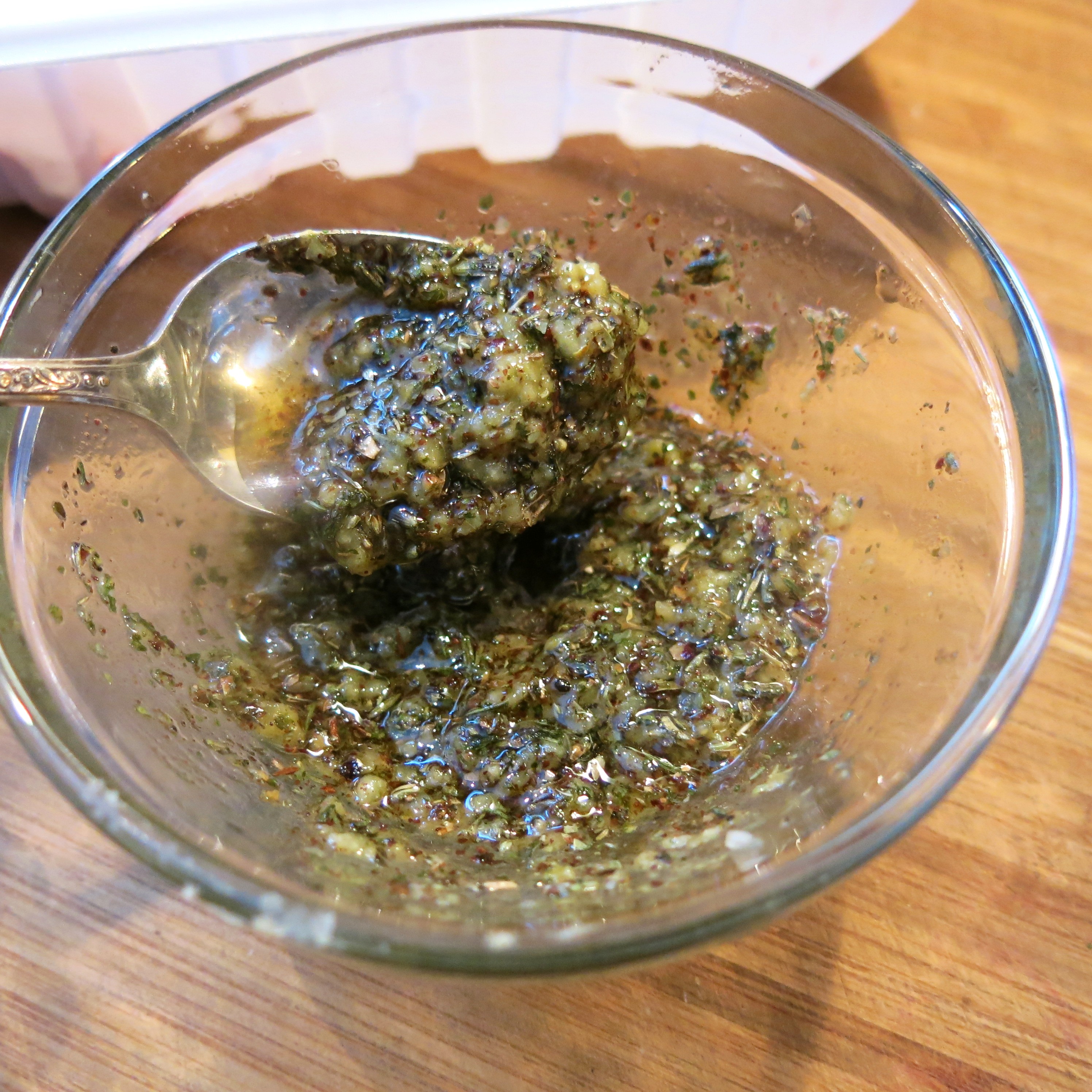 After you mix the rub together, let it sit on the counter for about 15-20 minutes. This allows the herbs to reconstitute and the flavors to meld.