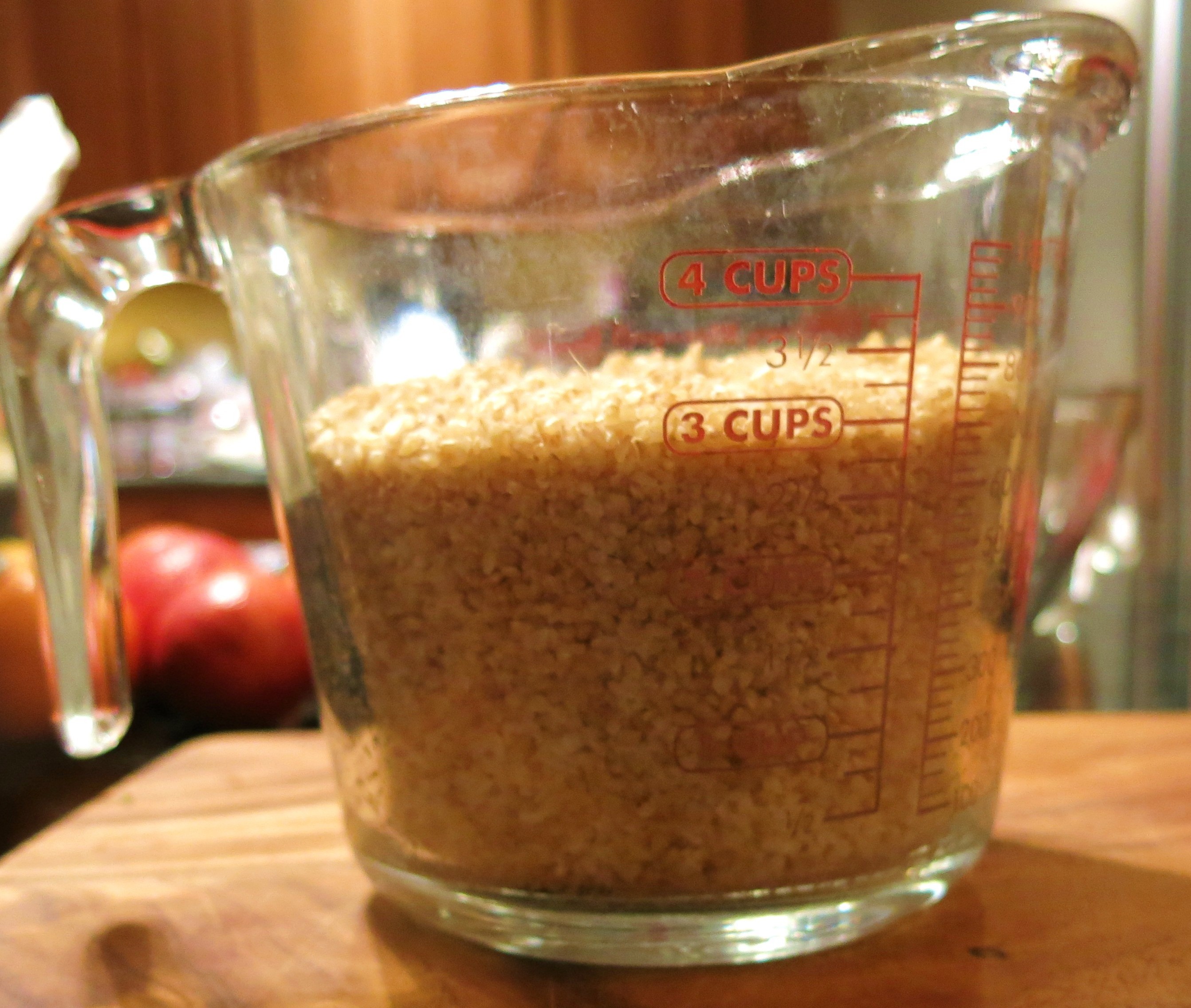 - 2 cups bulgur, no. 2 or medium-sized, soaked for 1-2 hours