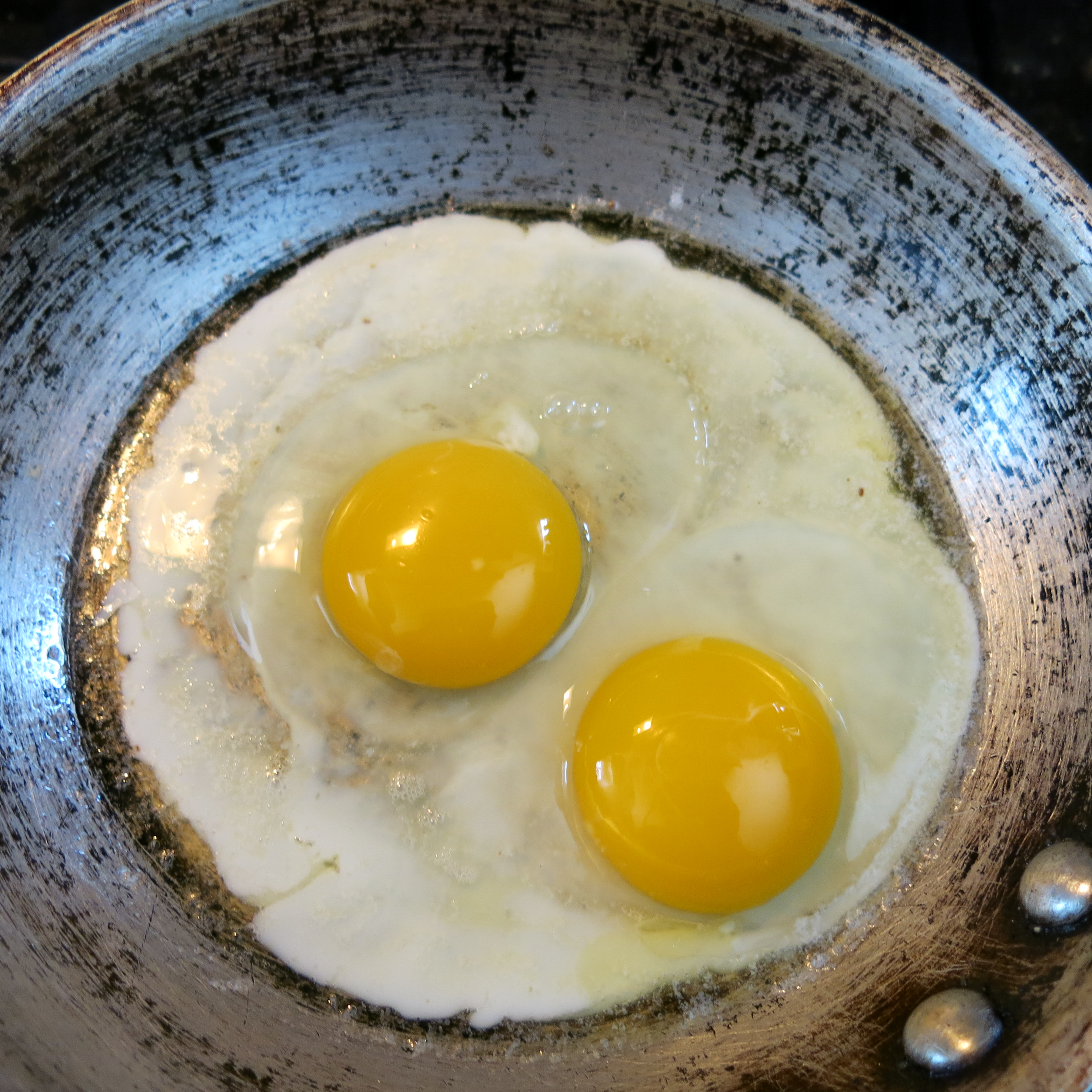 Many famous chefs test their potential sous chef’s skills by asking their potential employee to fry an egg; and fry it properly and perfectly. This method will produce two flawlessly cooked eggs, with no runny egg whites, and perfectly soft and unctuous yolks just waiting to be salt and peppered and devoured. The yolks will succumb and burst with goodness when you dip a piece of good, toasted bread into those lovely golden orbs of delicious-ness. This is the technique you need to know in order to achieve egg-frying perfection.