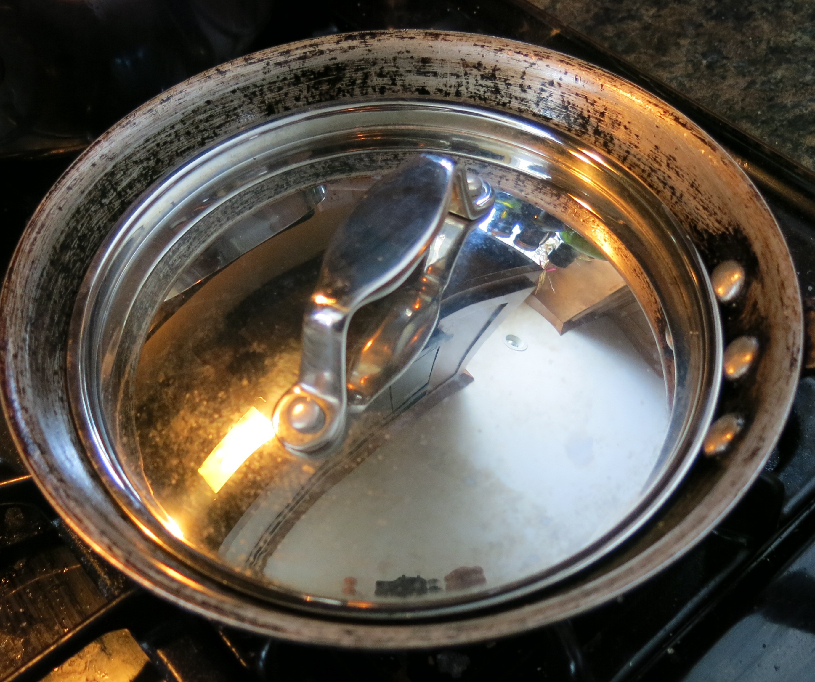 When you cover the pan (no peeking!), then set the timer for 2 minutes and 40 seconds if the eggs are room temperature and for 3 minutes if you pulled them out of the fridge. This is the time that works for me and for my stove. But stoves, like people, have individual peculiarities and differences. Start with these numbers and see how your stove behaves. Then, adjust accordingly.