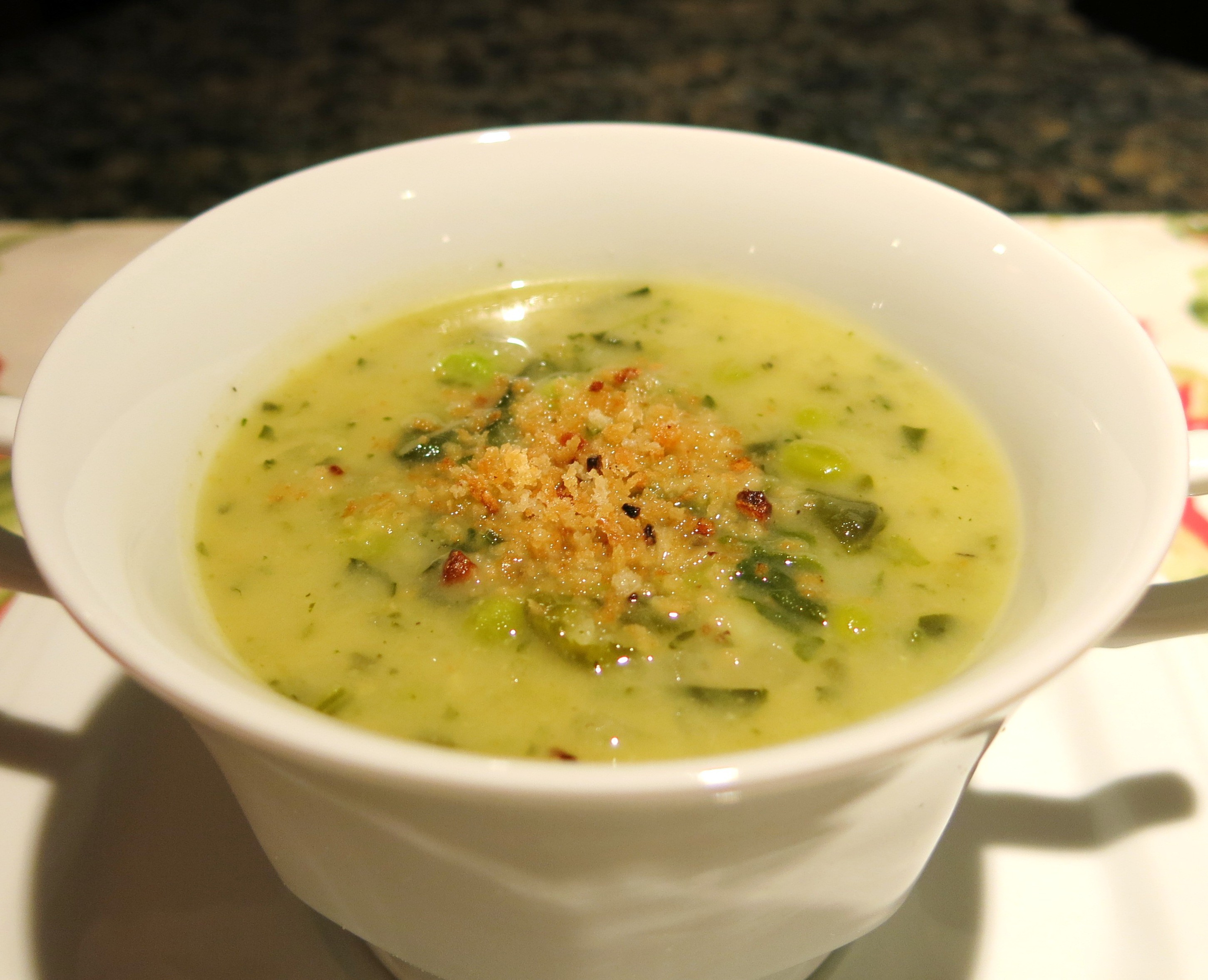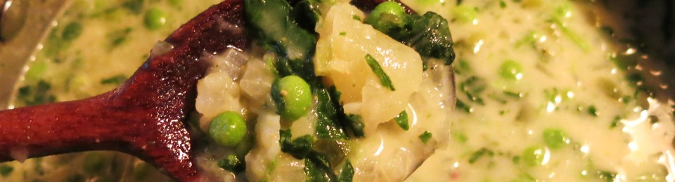 You can add finely diced fennel bulb, chopped cauliflower, leeks, scallions, ramps, scapes…these say “Spring” don’t they? By the way, if you intend to purée the soup, adding cooked rice will thicken and make the soup appear creamy, without adding the heavy cream. However, the consistency will not be as rich.