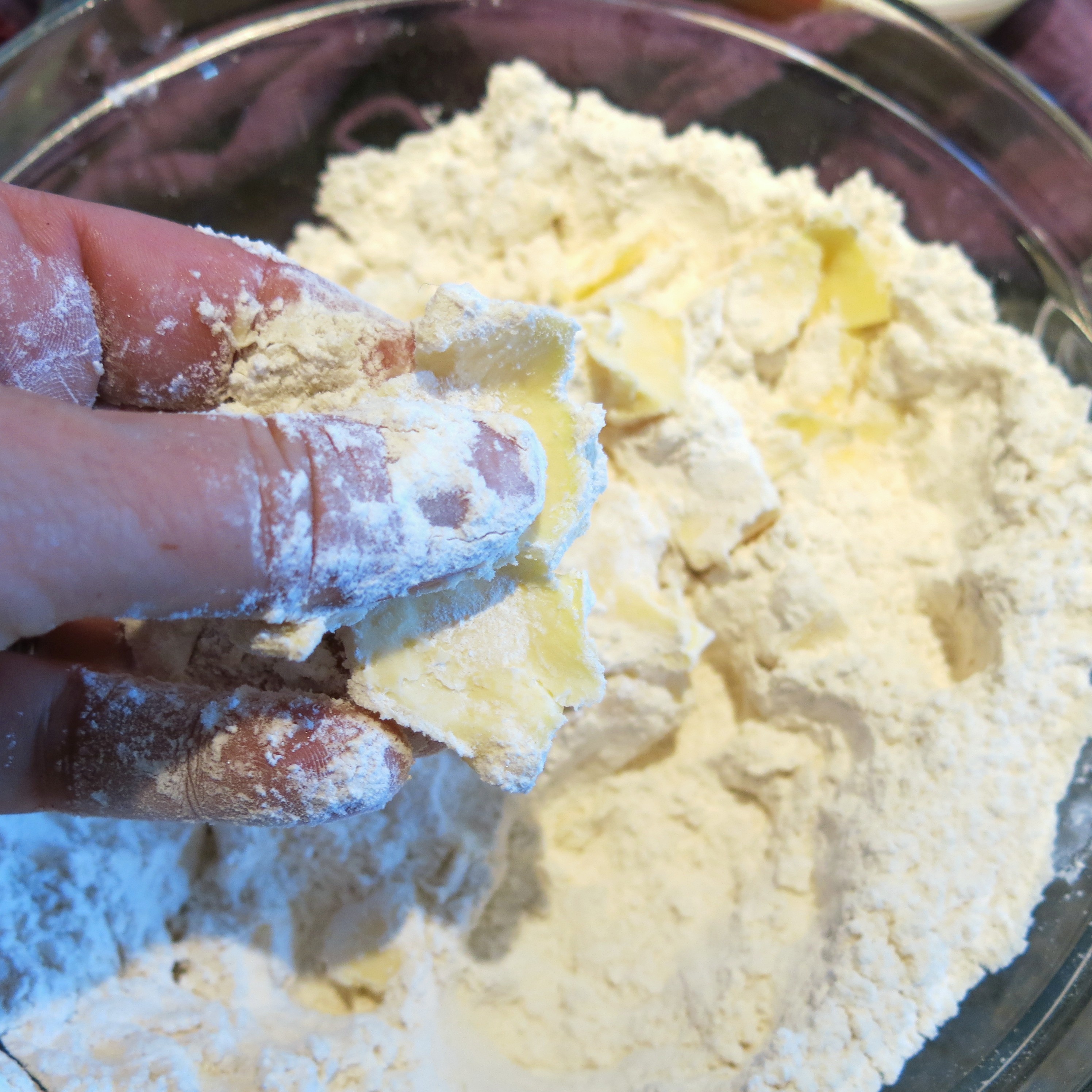 When blending the butter into the flour, I use my finger tips. The aren’t as warm as my hands, so the butter will remain cold. Also, over the years,