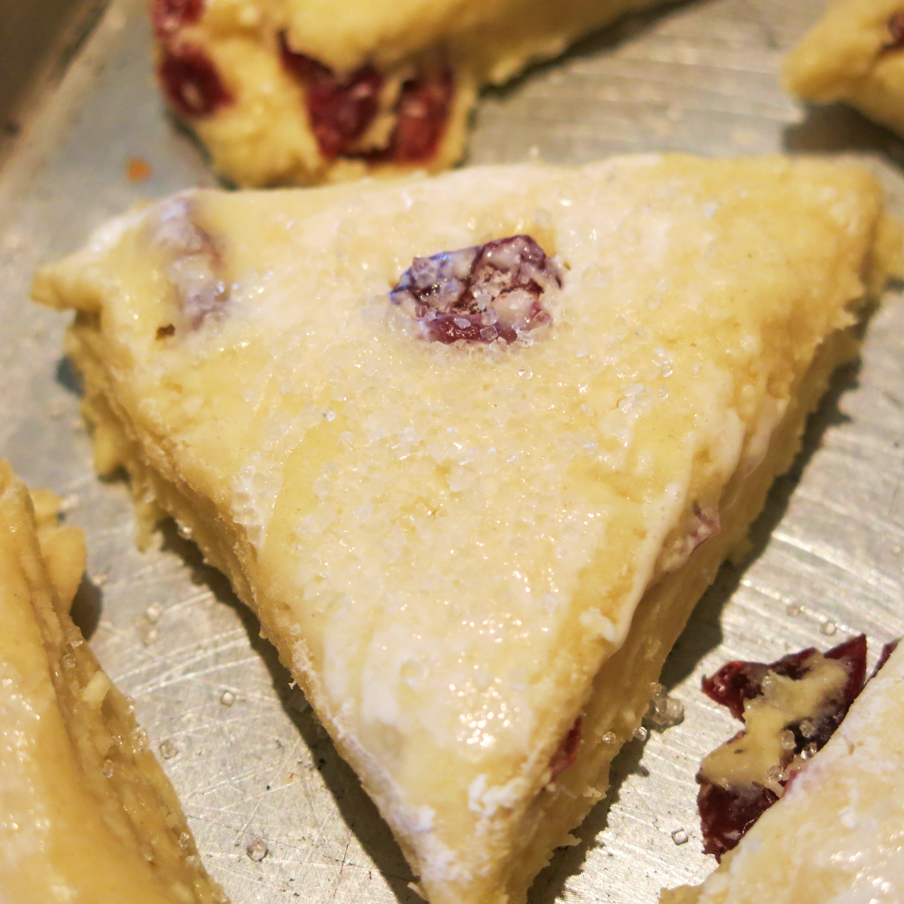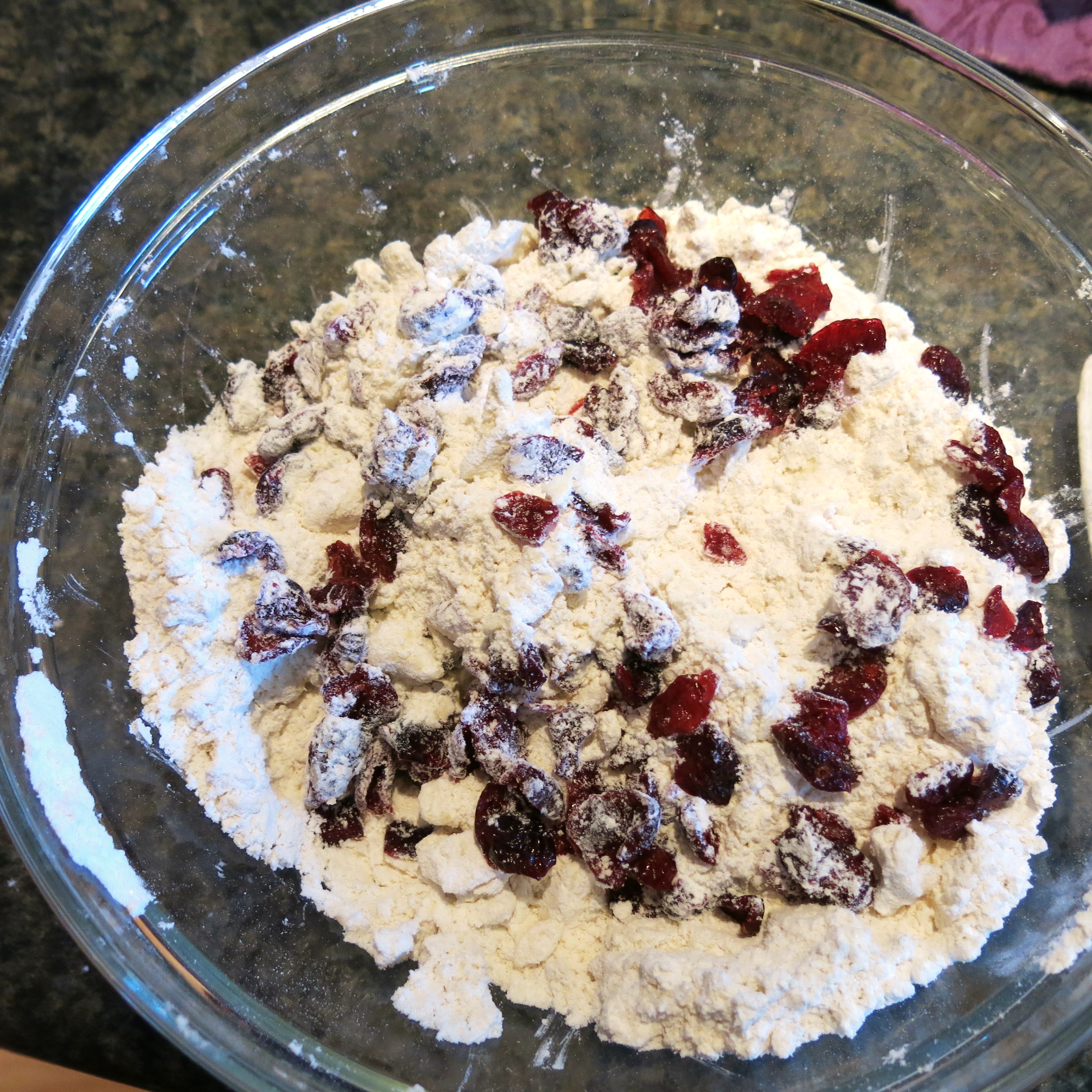 but today I made them with dried cranberries and a dusting of Vietnamese cinnamon when they came out of the oven. I have made these with lavender and lemon, poppy seeds and lemon, chives and cheddar cheese, sun-dried tomatoes and basil, bits of bacon and chives…you get the idea. The thing to remember when adding flavors, is to use lower moisture ingredients and keep it to about 1/3-1/2 cup total.