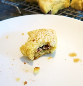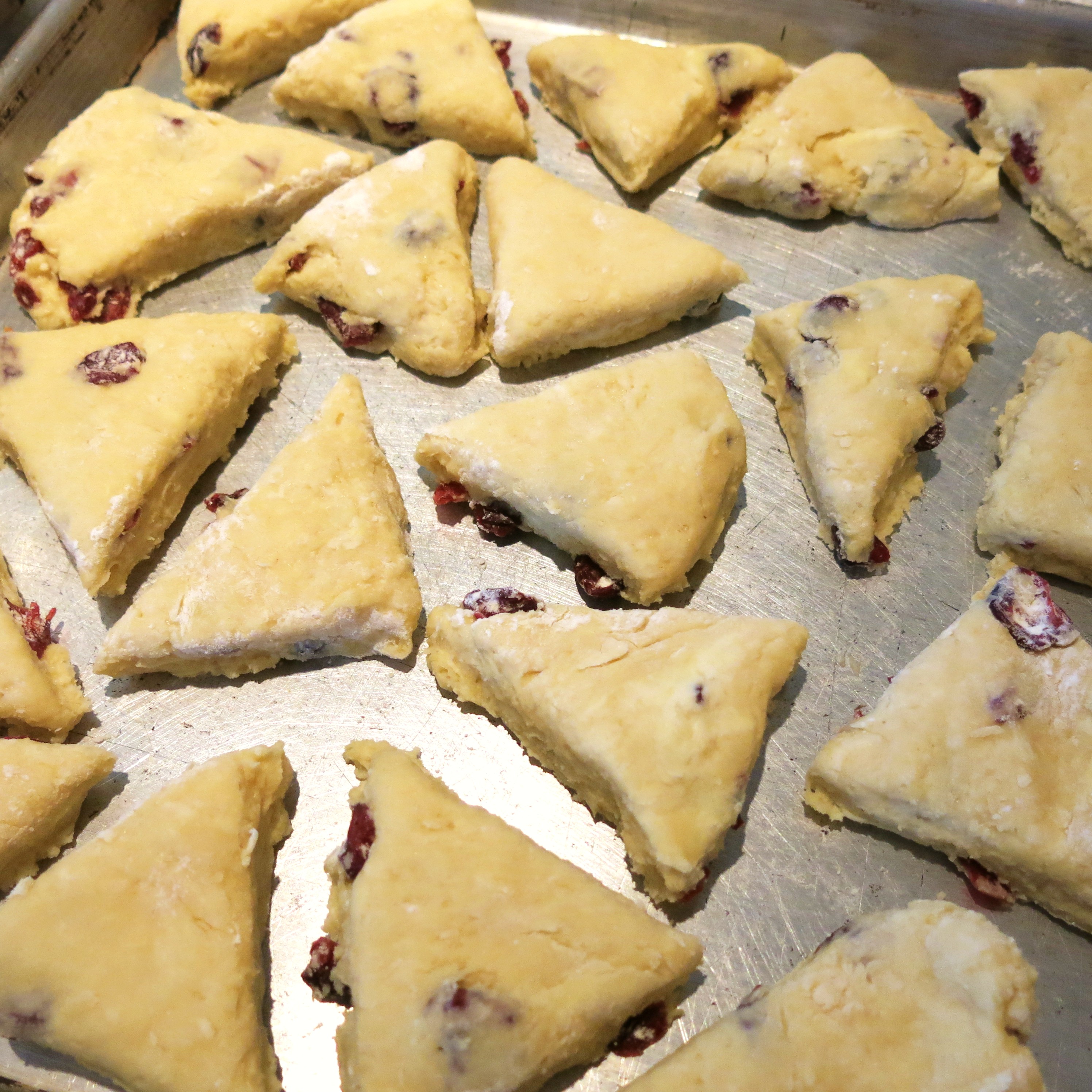 The Sweet Tooth uses milk, I use buttermilk instead. Scones (remember, rhymes with “cons”) are traditionally made with currants,