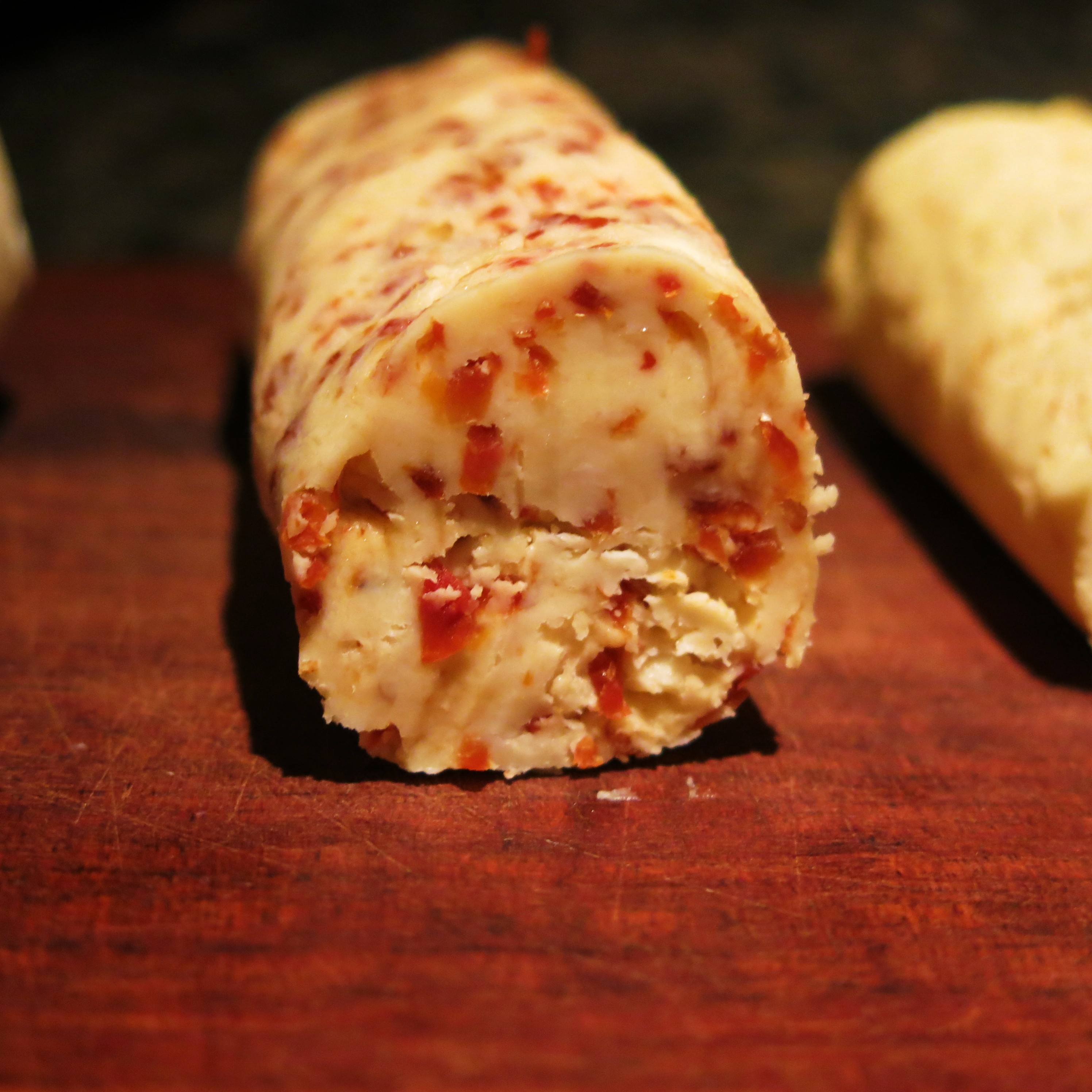 TO USE: Cut into 1/4-inch thick slices from either the chilled or frozen log. Put unused portion back in the fridge or freezer. Place one or two slices on top of HOT meat, poultry, fish or toss with pasta.