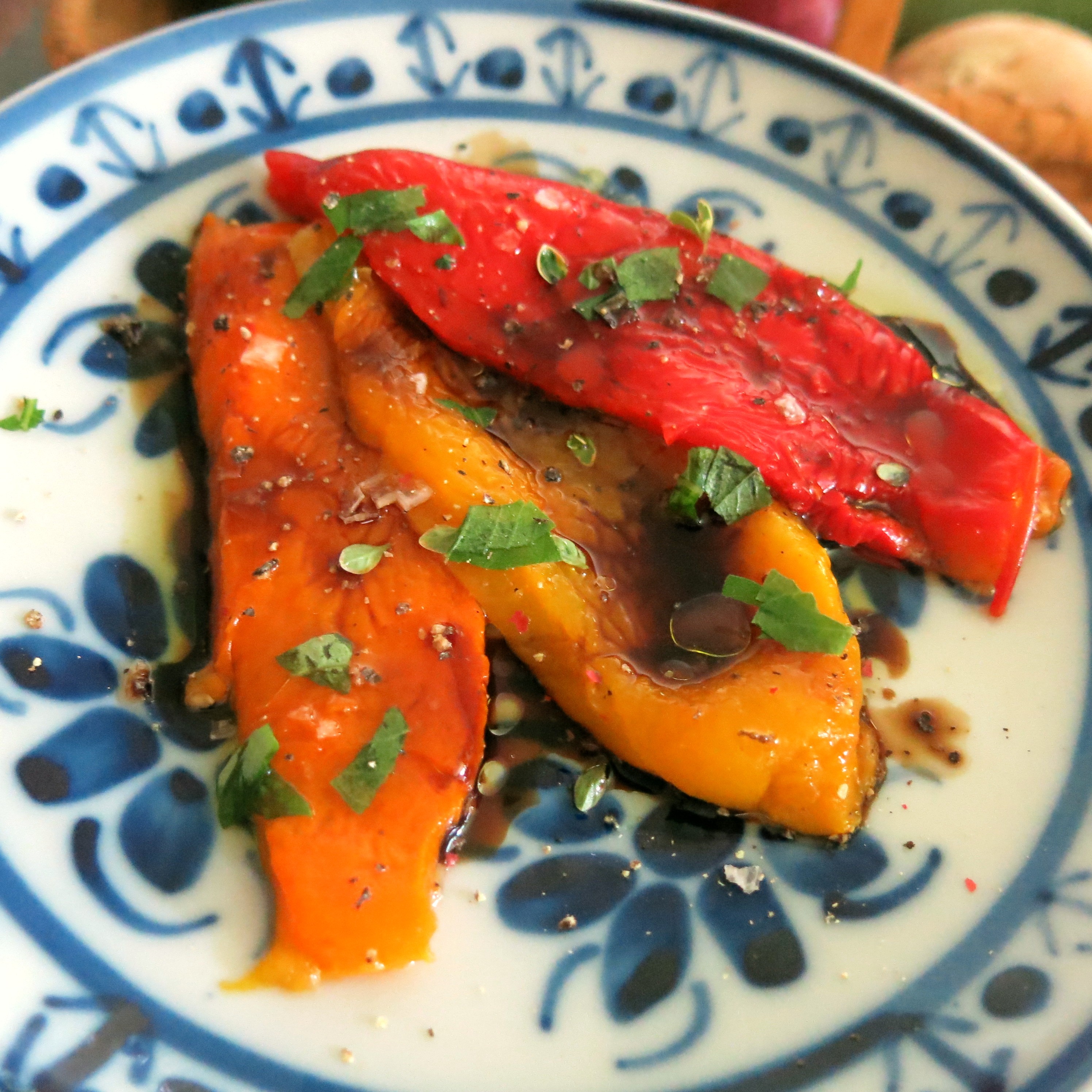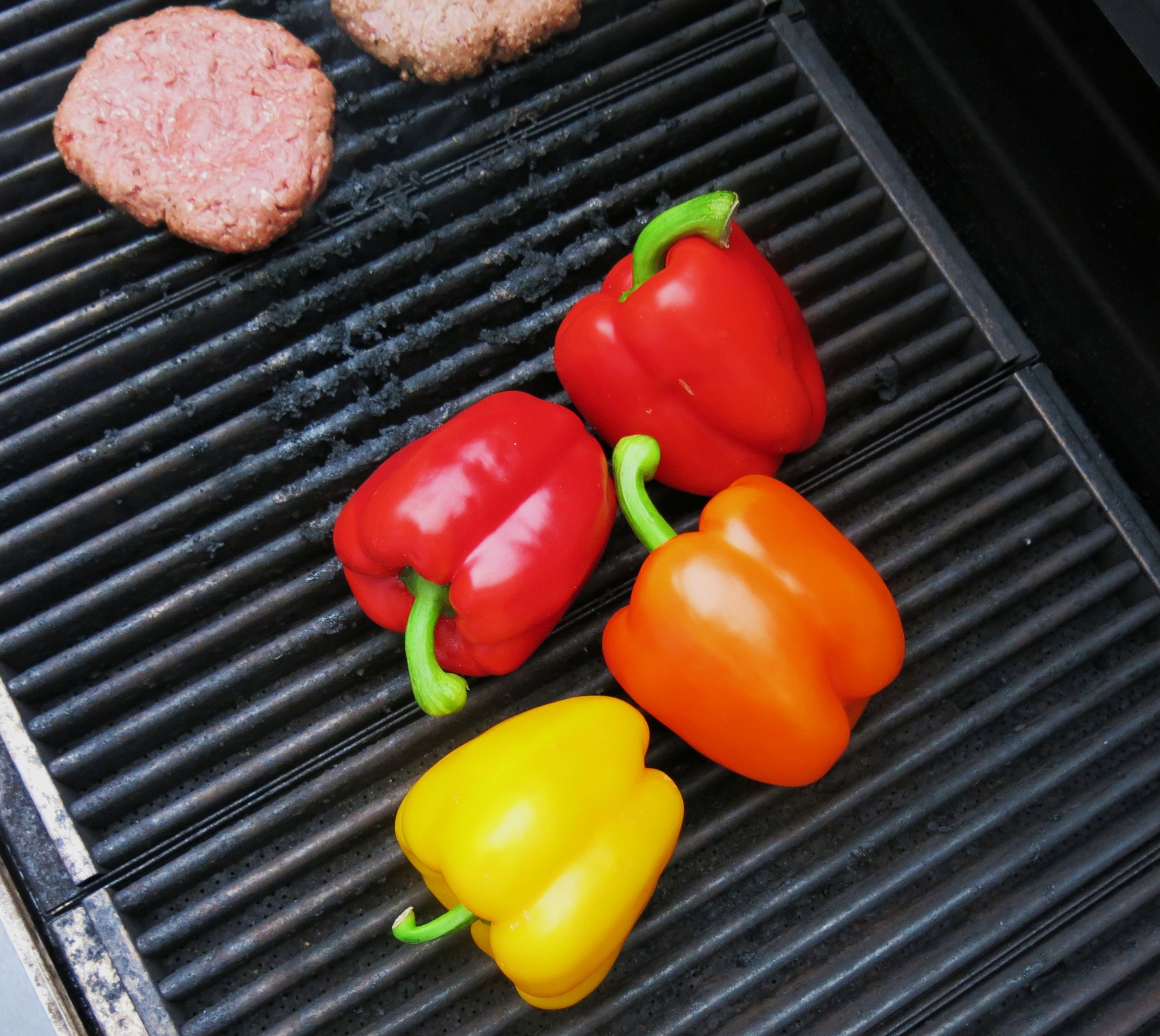 It can get to be just that bad. We’re not going to even talk about zucchini here…you’re going to grate that and make a cake (that’s a later post), or jam, or “pasta” or simply grill it to perfection. We’re talking about bell peppers. You can do all those things I mentioned with bell peppers, and you will. But, there is one other thing you can do with bell peppers. You can roast them on the grill, pack them into containers or Zip-loc bags and freeze them. They’re fantastic. They’re beautiful. They’re delicious. It’s always so nice to have some harbingers of summer on your holiday table. And, it’s pretty simple to do. Oh yeah, you can eat them right away, too!