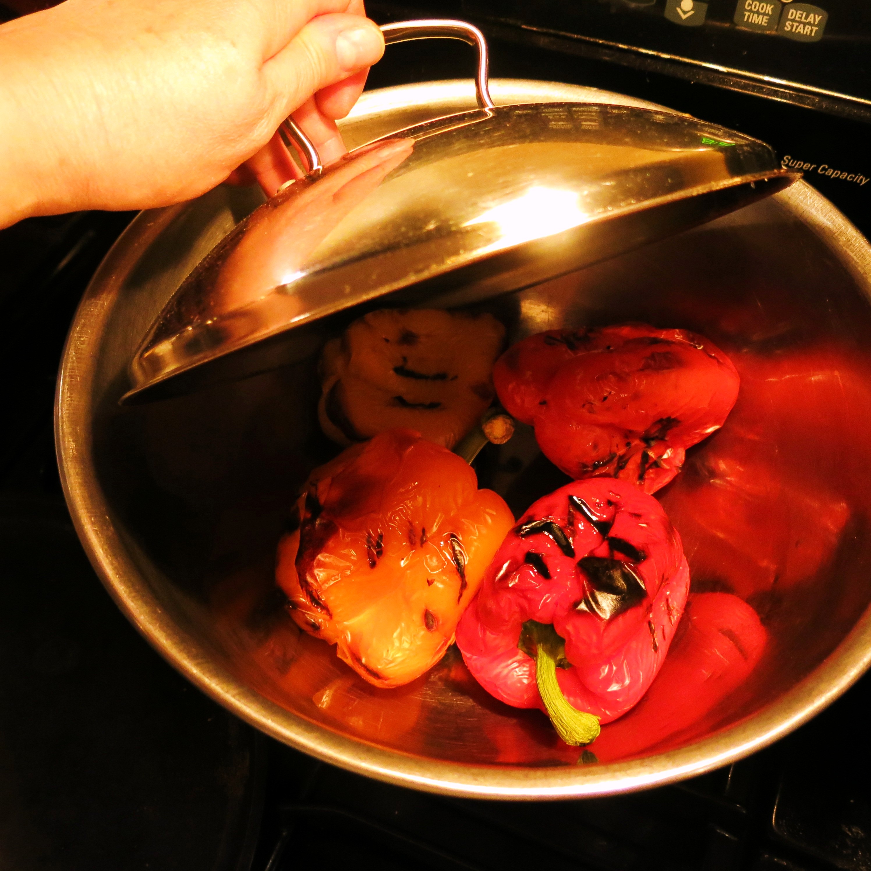 I was grilling a couple of burgers the other night, so I thought I’d just throw the peppers on too. At times, The Goddess is a model of efficiency. Now, if that damn basement would just clean itself, all would be right with the world. But, I digress; we’re talking about peppers here. I grill more, rather than less, as the grill is going, so why not have some for dinner tonight, that chopped salad for tomorrow’s dinner BBQ and a few for the freezer? As I said, this is pretty simple. It doesn’t heat the house up and once grilled, they need to rest for at least 30 minutes, but can stand for a couple of hours if that works better for your life.