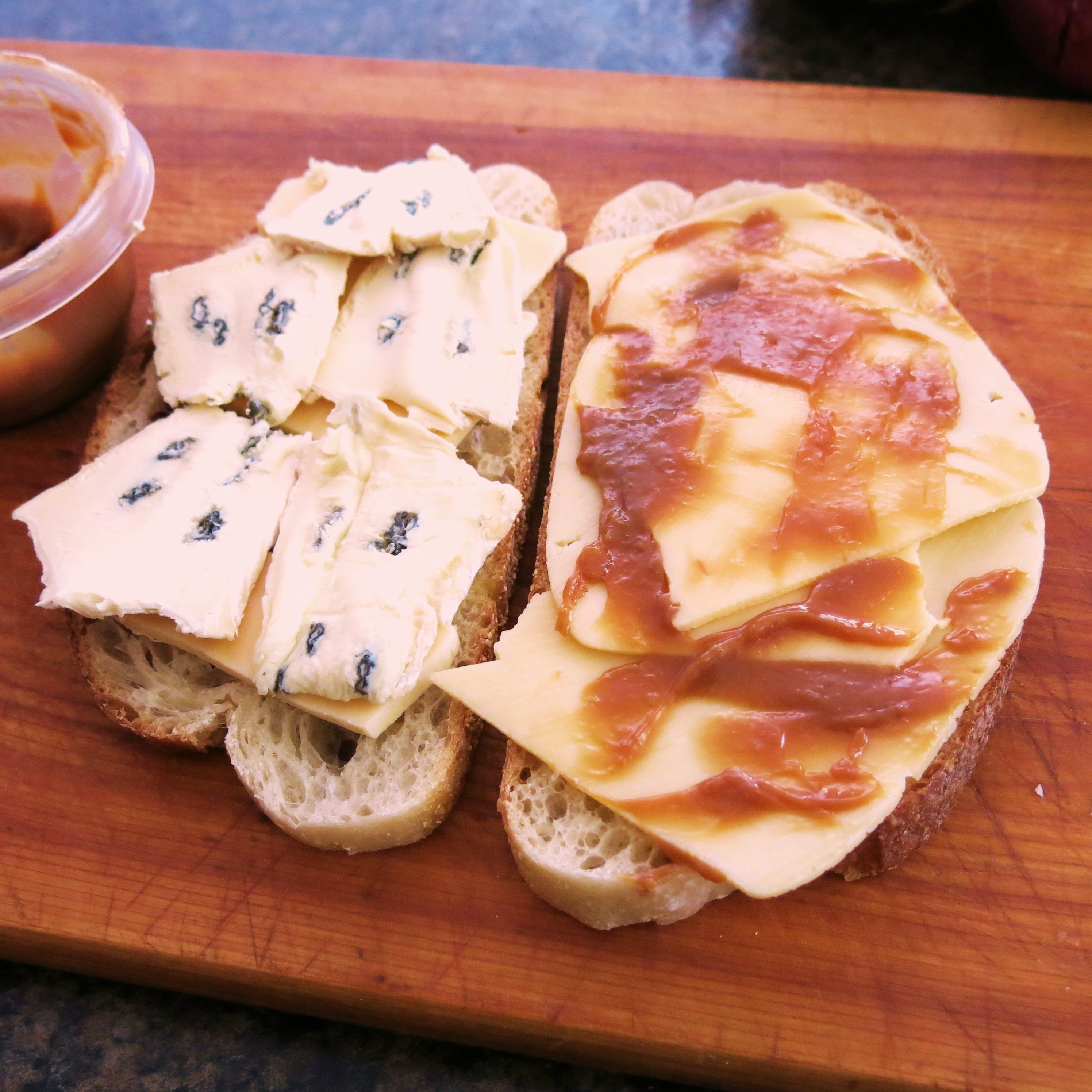 So, I had some of the leftover Caramelized Onion and Dried Fruit Jam, some Dulce de Leche with Roasted Garlic (thank you for the idea, Garces Trading Company) and some Blueberry Conserve from other meals. I also had a very nice piece of pâté I purchased at my favorite Polish deli and some bits of cheese that needed to be used. And what better way to use them, than a grilled cheese on some good country-style bread? I tell you, there is no better way. It’s that simple.