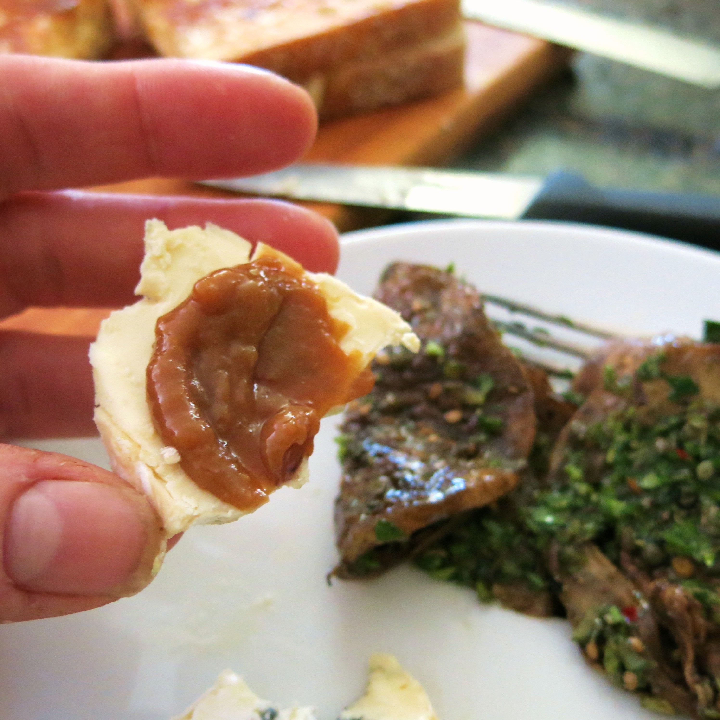 some Grilled Marinated Eggplant that just gets better each time you make it, and a smear of the dulce de leche mixture on some of that incredible bleu cheese.