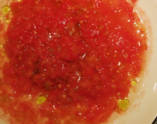 I’ve made this in winter, with hot-house tomatoes and it was good, but with a summer, vine-ripened, juicy tomato, it is truly orgasmic! You’re thinking that The Goddess has been in the sun way too long. How could something, which appears to be so simple, be that good? When you make this, you’ll understand. Then, you’ll wonder why you didn’t think of something so supremely simple; I did when I ate this in Barcelona.