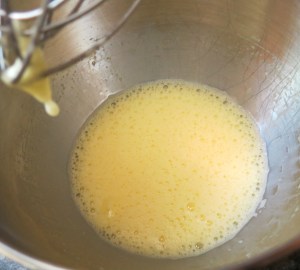 You’re going to beat the eggs until they are foamy and lemon-colored.