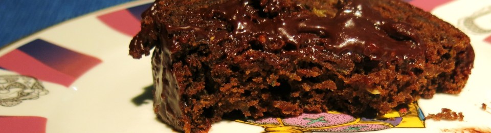I used a chocolate glaze. It was dark, rich and shiny. The cake was moist, slightly dense, but not too dense. All in all, this was very good and it was much better the next day. Notice the past tense there…it truly WAS a good cake. Next time I think I will add the orange zest and maybe some cayenne.