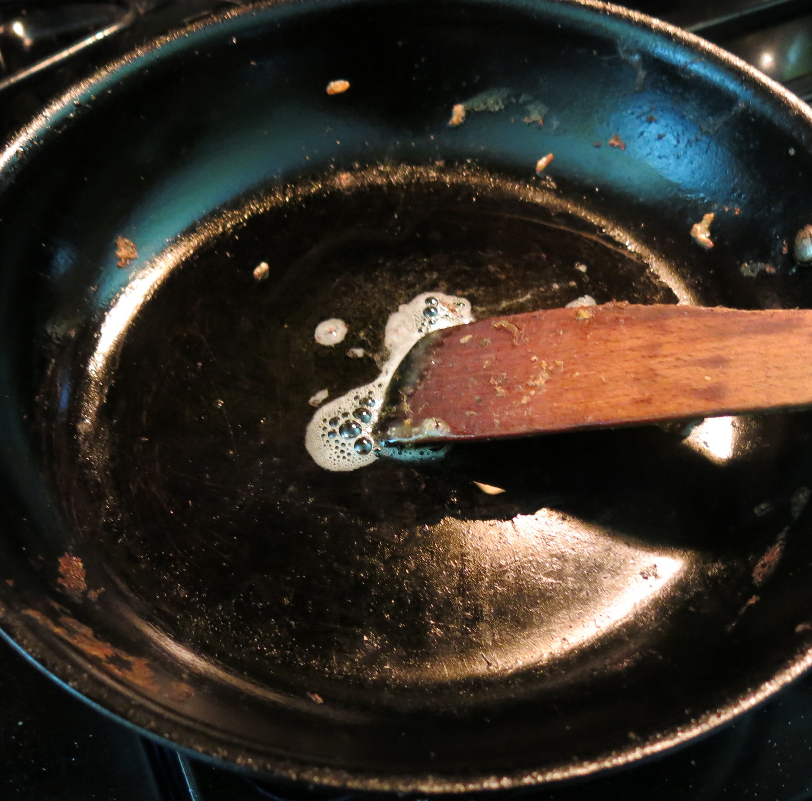 I use about 1 tablespoon of bacon drippings, not oil. That’s right, The Goddess has a nice big jar, sitting right near her stove that’s almost full-to-the-brim (most of the time) with what my mother and her mother before her called “flavor”, or bacon grease. I’ve taken to calling it “bacon drippings” because most people recoil when they hear “grease”. Then visions of heart attacks and IV tubes flash before their eyes…it’s ugly and this isn’t. If you feel really strongly about it, use the oil, but that elusive bit of smokiness and flavor won’t be there. Anyway, this is my indulgence, not yours. The Goddess doesn’t eat this every night, though she may start; she did have the leftovers for breakfast…hmmm….