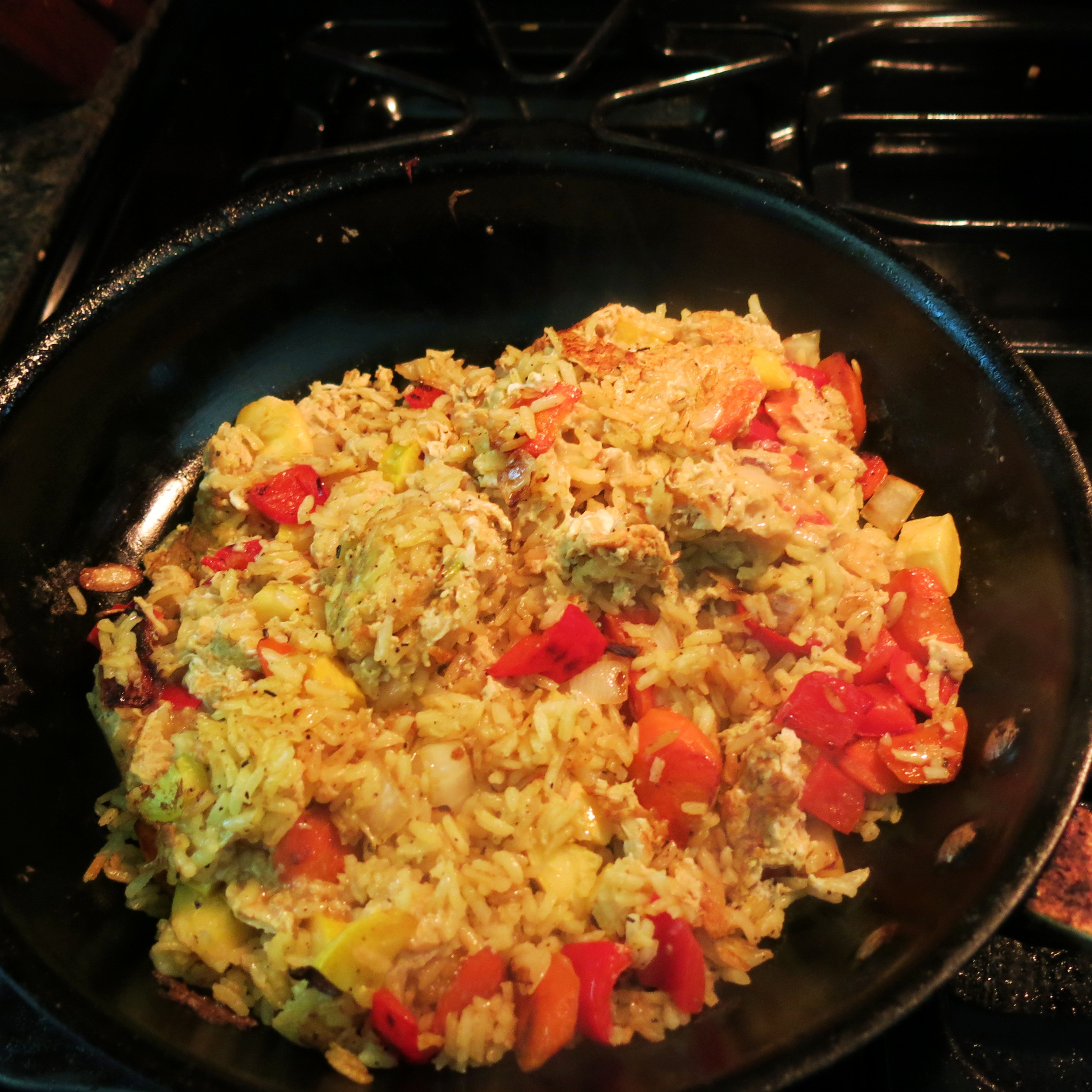 This is a meal unto itself. It has protein, vegetables, it’s filled with flavor, it’s fast and easy to prepare, can use leftovers, if you need to and it just tastes, well…it tastes self-indulgent. And sometimes that’s a good thing. A very good thing.
