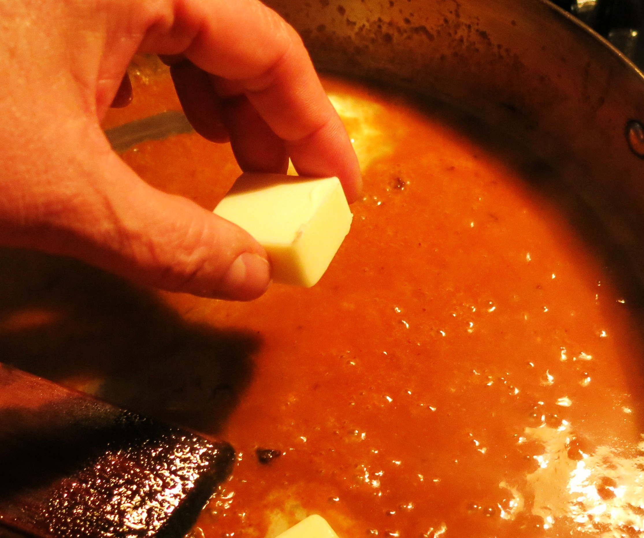 Then, stir in the butter, piece by piece.