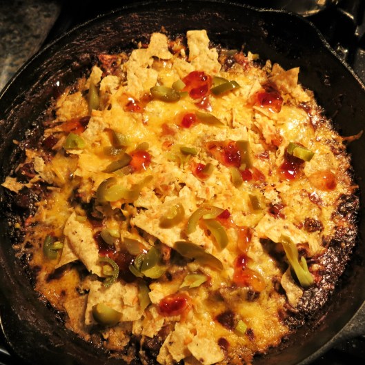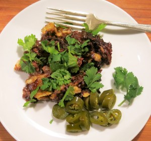 I added some pickled jalapeños and a nice heap of chopped up fresh cilantro…The Goddess loves, loves, loves cilantro. This is a truly delicious combination of flavors. Savory, with a hint of sweetness. A little heat, a little salt, with loads of flavor…what more could you want for dinner or a great, late night snack? I do think a nice squeeze of lime would really make the flavor pop…next time. And there will be a “next time”.