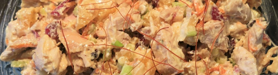 carrot, Celery, Chicken, citrus, dried cranberries, Dried Fruit, fruit, mayonnaise, mustard, onion, orange zest, Scallions, yogurt