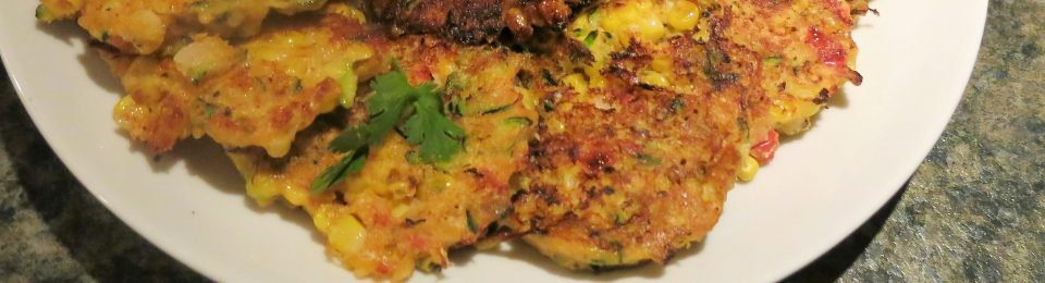 Spicy Corn and Zucchini Cakes with Tomato Bits