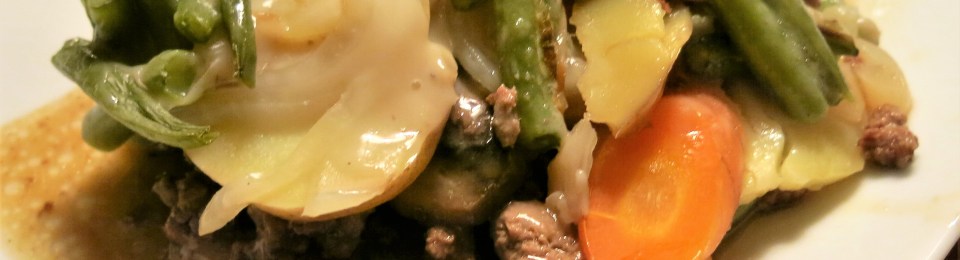 If I recall, Joan found this recipe in the local paper and I think she made this at least once a week. It was perfect for her family, as you could alter the amounts easily and after a while, I think even she was able to not follow the recipe anymore and just “wing it”. I remembered watching her make this, but when you’re young, you don’t always pay as much attention as you should, so I only had the memory. Not the recipe. Then, I ran across a recipe for Amish Beef Casserole. The Amish have a deserved reputation for being good, simple cooks, using what they have at hand, so I took a look. And, voilà! I think this must be it, or at least pretty close to it, but with The Goddess’s “touch”.