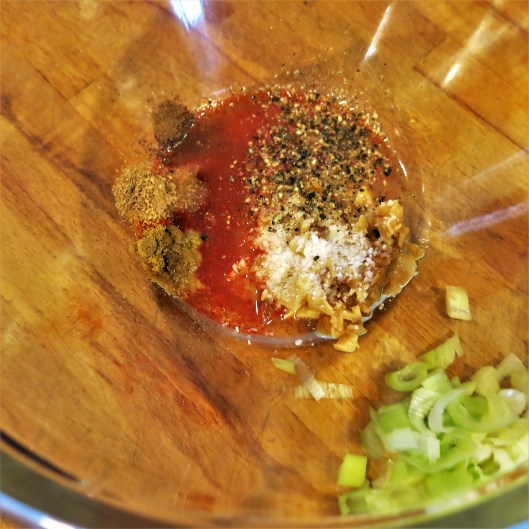 I make the vinaigrette in the bottom of the bowl I’m going to mix the salad in. Just put everything but the oils in, whisk them up and then ever-so slowly drizzle the oils in, whisking like a dervish, until the oil is all incorporated. The vinaigrette will be just slightly thickened. This is a nice vinaigrette unto itself. I’ve been know to make a triple batch, just to have it on hand. When I do that, I put everything, including the oils in a jar with a tight-fitting lid and shake the hell out of it. Then store it in the fridge and use at will.