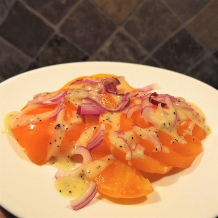 Orange-Poppy Seed Dressing with a Hint of Vanilla 25 Thursday Jul 2019 Original size at 2992 × 2992 ≈ Leave a comment Tomato and Onion Salad with Orange-Poppy Seed Dressing with a Hint of Vanilla