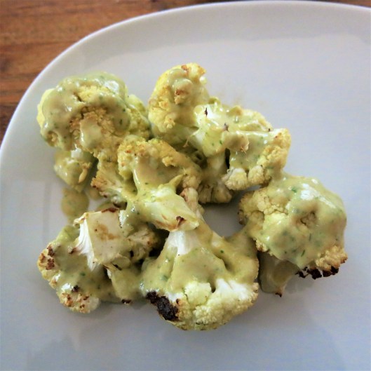 I made it and served it right away, drizzled (heavily) over the roasted cauliflower. But, it benefits from sitting; the next morning, it was even better…if that’s even possible.