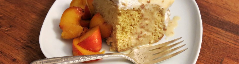 I think almost every country in Latin America makes a version of this, and the recipes are all pretty similar. Now, you will usually see this referred to as “Tres Leches Cake”, because it is, most of the time presented as a one or two-layer cake, which is frosted with either the whipped cream or meringue, as mentioned. I call it a dessert, as I don’t usually try to cut it into squares to serve, but rather scoop it out into bowls. I usually serve a bit of extra whipped cream on the side and some fresh, seasonal fruit. This is a very sweet dessert, as are many Latin American desserts and I find that the fruit helps balance that out a bit. Berries, peaches and nectarines are particularly delicious.