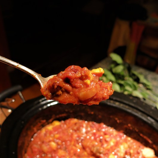 The initial “soup” was very, very thick; stew-like. That was exactly what I felt like, at that moment. It was so delicious, filling and comforting. I reheated this many times. And each time I reheated it, the chili got better. You know, this is the way it is with chili and most soups or stews. Later, to change things up a bit, I added a can of tomato sauce to thin it out a bit.