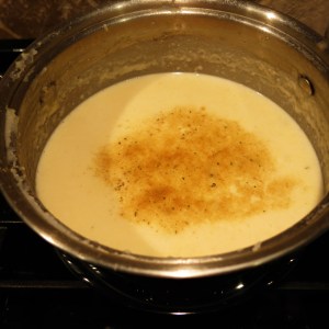 Honestly, I really had been thinking about potato soup today. I had leftover mashed potatoes, with just a bit of parsnip in them. This is a perfect situation to make a soup. I had some ham, a couple of slices of jamón Iberico, a few leftover roasted baby potatoes, and I shredded up a carrot. You can see the “roots” of a soup, can’t you? This pretty much just fell together. I only had about 3/4 cup mashed potatoes, so I added some dry potato flakes, to round it out.