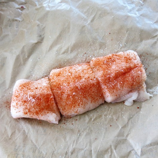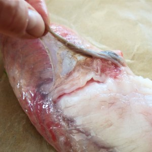 but it’s covered with a slippery membrane, much like silver skin on a tenderloin. It must be removed, as it seizes up and is unpleasantly touch. You can ask your fishmonger to do it, but it isn’t difficult to do yourself.
