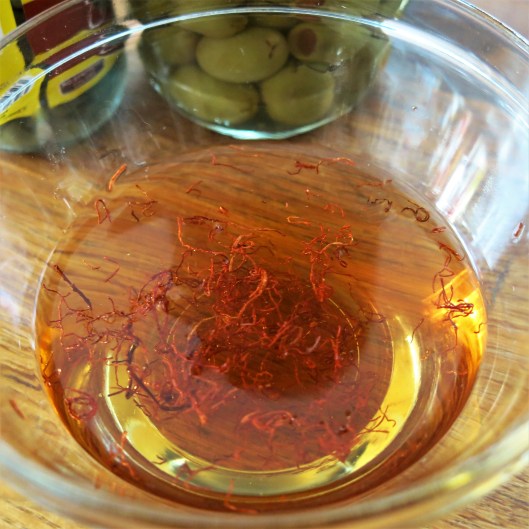 place the saffron threads in the sherry and set aside; you want to do this at least 10 minutes before you’ll be adding the sherry. I use a deep pot with a good lid for this.