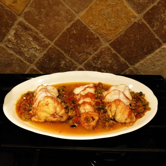 Slice the pieces of fish on the diagonal; nap with the sauce, sprinkle with parsley and serve any additional sauce on the side. I think good bread is a nice touch…you don’t want to waste any of that sauce.