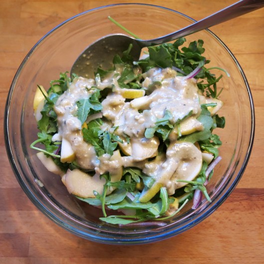 Arugula-Pear Salad with Bleu Cheese Vinaigrette Recipe©Marcia Lahens 2020. All rights reserved.