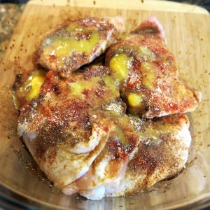 - 6 large chicken thighs, bone-in and skin-on
