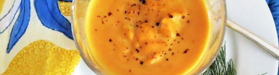 This is so simple. And delicious. It makes a lovely first course or an evening meal with some Spicy Peanut Noodles, Creamy Peanut Rice Noodles or some Cuban Ham Dip. It’s light, tasty and goes together quickly. It’s a perfect summer, mid-week meal. Carrots make a great soup and they work so well with ginger and these other yummy things. You may like to add half-and-half or coconut milk, if you want a creamier version. But, the flavors are cleaner without it. The carrot truly shines! We rather enjoy it this way. But, if that’s the route you want to go, add no more than 1 cup of either, instead of an equal amount of the broth. This is a perfect company dish, as you can make it early in the morning, refrigerate it and then reheat it for dinner. I prefer to reheat it. If you do use the half-and-half, reheat the soup, then add the dairy. The coconut milk reheats with no problems. TIP: Reheat over LOW heat. Yes, it takes longer, but you’ll have less problems, like sticking and curdling.