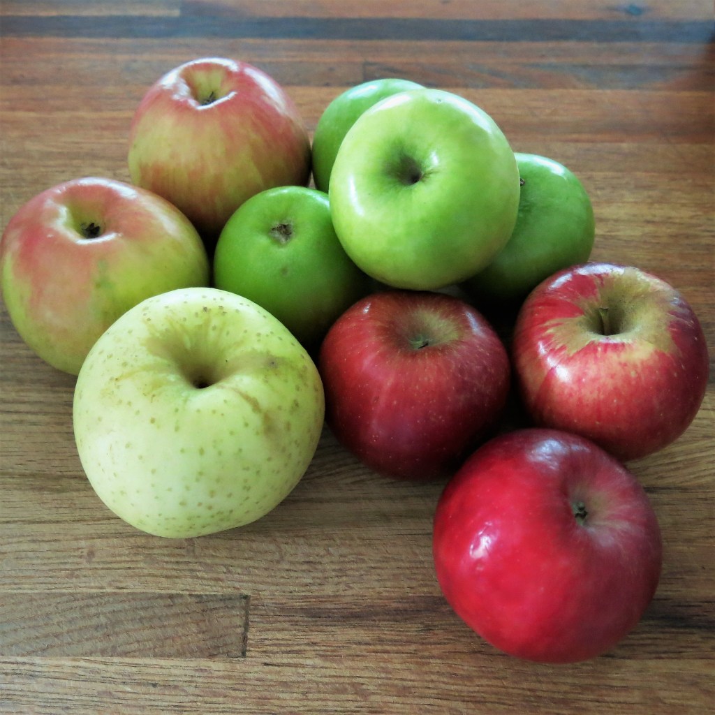 Jonathans, Golden Delicious, Granny Smith and a couple of Fuji thrown in, because I had them and they needed to be used. I also had about 3 large pears that needed attention, so here we are!