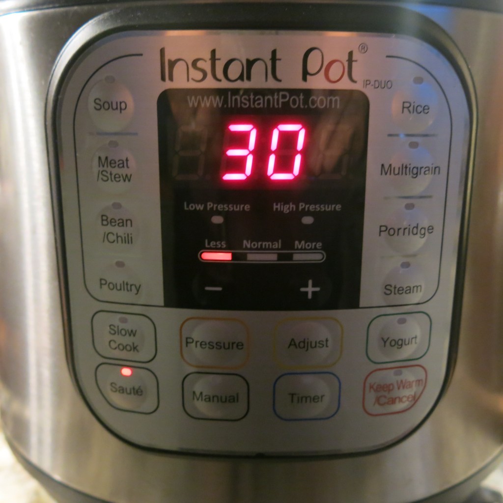 I filled the Instant Pot liner to the 10 cup level, added the cider and lemon juice and put them under pressure for 8 minutes. I let the steam release naturally.