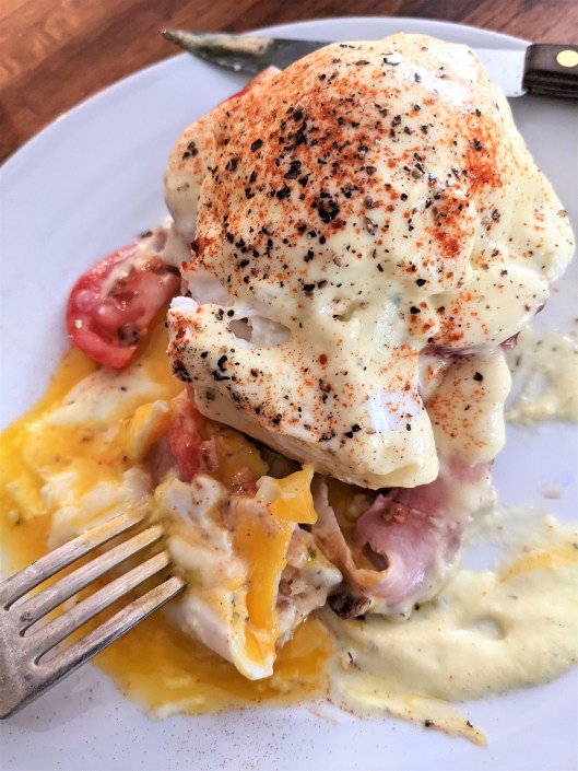 And that’s petty much it! It is now ready to use. It’s much easier, more stable, and it tastes great! By all means, make the real-deal hollandaise if you want, but this is a nice little option to have in your back pocket. Here is the end result…so delicious! Okay, so I like some heat and lots and lots of freshly ground black pepper on my eggs.