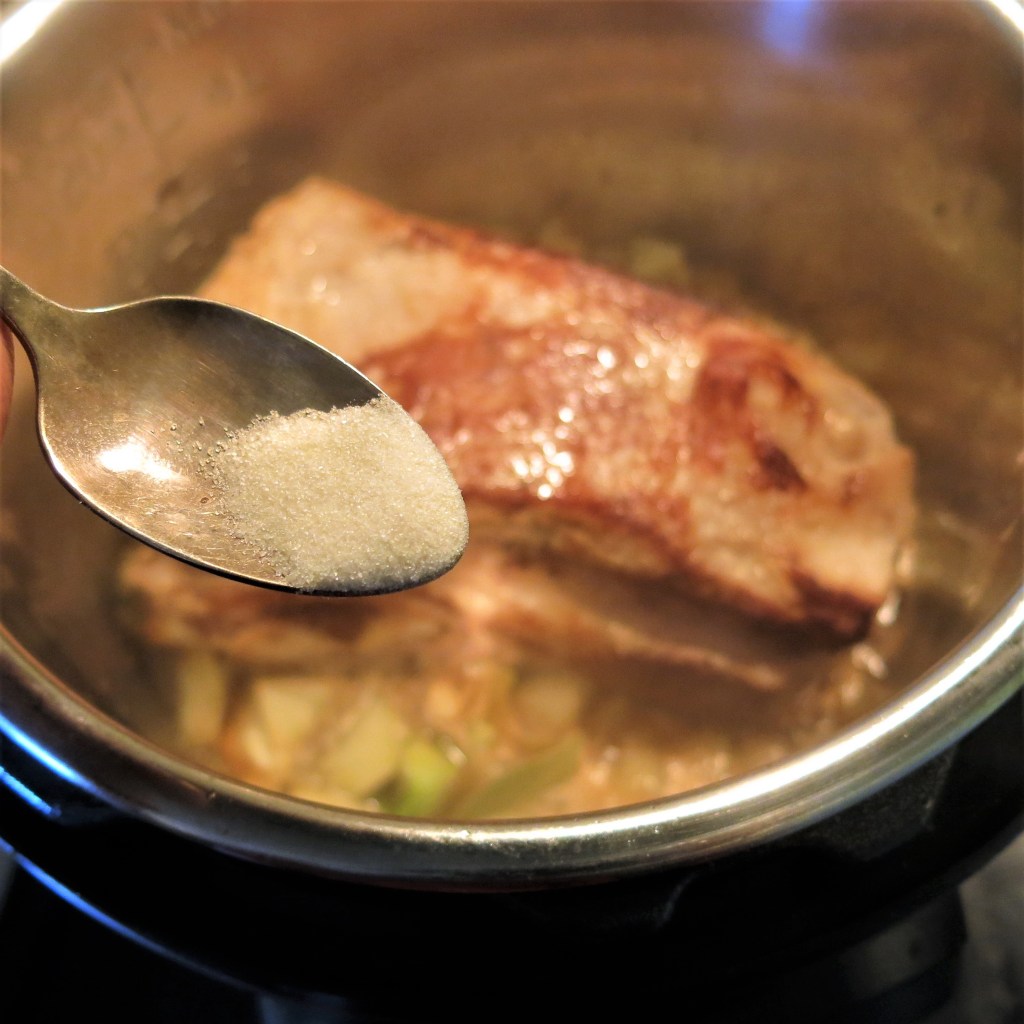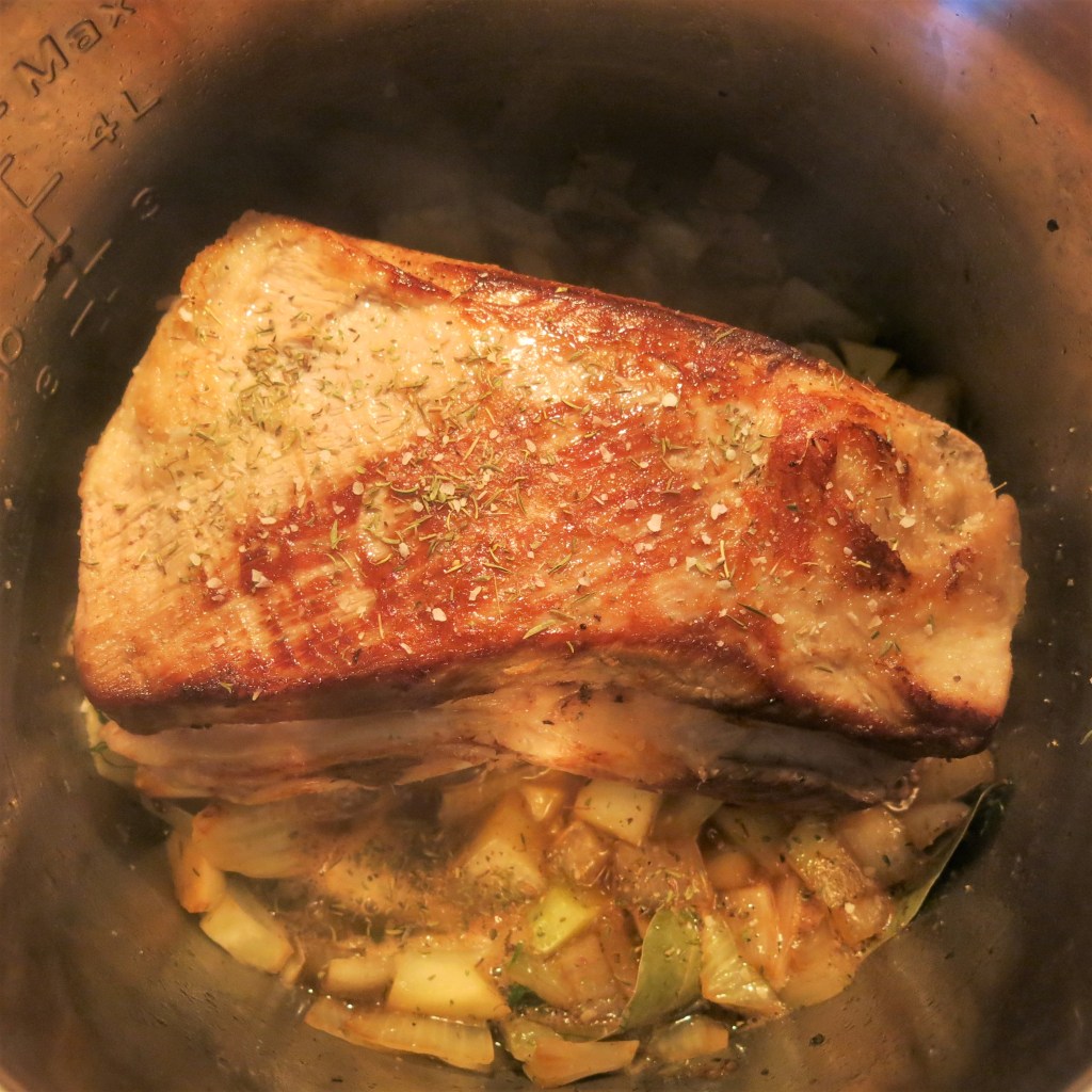 Of course, I couldn’t leave the recipe alone. The big thing you’ll notice is the absence of the pearl onions and the artichokes, even though I listed them in the recipe title. Well, I thought I had the “pearls”, but alas, no I didn’t. And I didn’t want to go to the store. Yes, I’m just that lazy. And, I love and adore artichokes, but The Spicy Honey doesn’t. So, I left them out. The sacrifices one makes for love! But, do please, please, please add them when you make this. I wanted to use the multi-cooker for this, but if you want to prepare this in the oven, then check out the original recipe. You should do that anyway, really. My plan was to slow-cook for part of the time, then check for doneness and if the meat isn’t quite tender, switch on the pressure cooker and finish it off. Turns out it was perfect and I didn’t need to. But, it’s a good option to have. You’ll note the addition of unflavored gelatin. WHAT? This is a good thing. The gelatin gives the juices the “texture”, if liquid has texture (it does!), of a slowly simmered homemade broth, which I didn’t use today. I also didn’t add any thickening agent. I didn’t think it needed any. I used the same amount of veggies in the recipe, but the veal breast I used was only 2 1/2-pounds. Next time I make this (and there will be a “next time”), I will add really good quality black olives, just before serving.