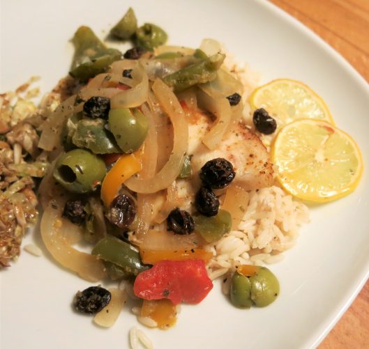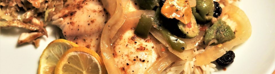 Sicilian Fish with Onions, Peppers, Raisins and Olives