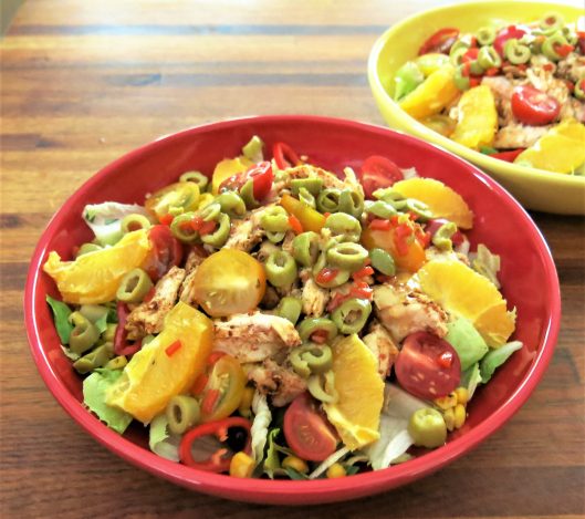This is a quick-fix dinner for Cinco de Mayo. If you have leftover chicken from Sunday dinner, like the