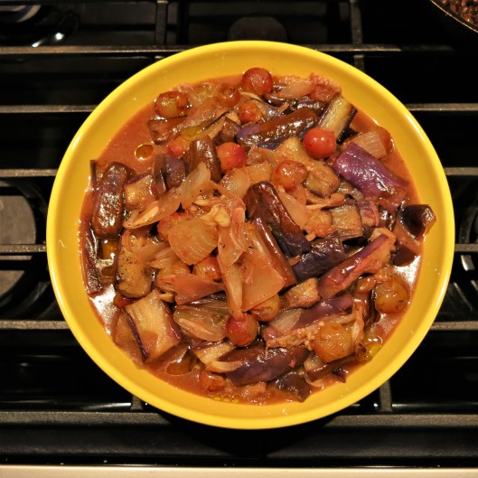 From time to time, one needs to “cook the pantry/fridge”. Things accumulate and are pushed to the back. So being in self-isolation, now and again, one needs to look deeply into the crevices that things slide into…like that box of partially used, dry falafel mix. It’s a challenge to use things in new and creative ways. That’s how this eggplant dish came to be.
